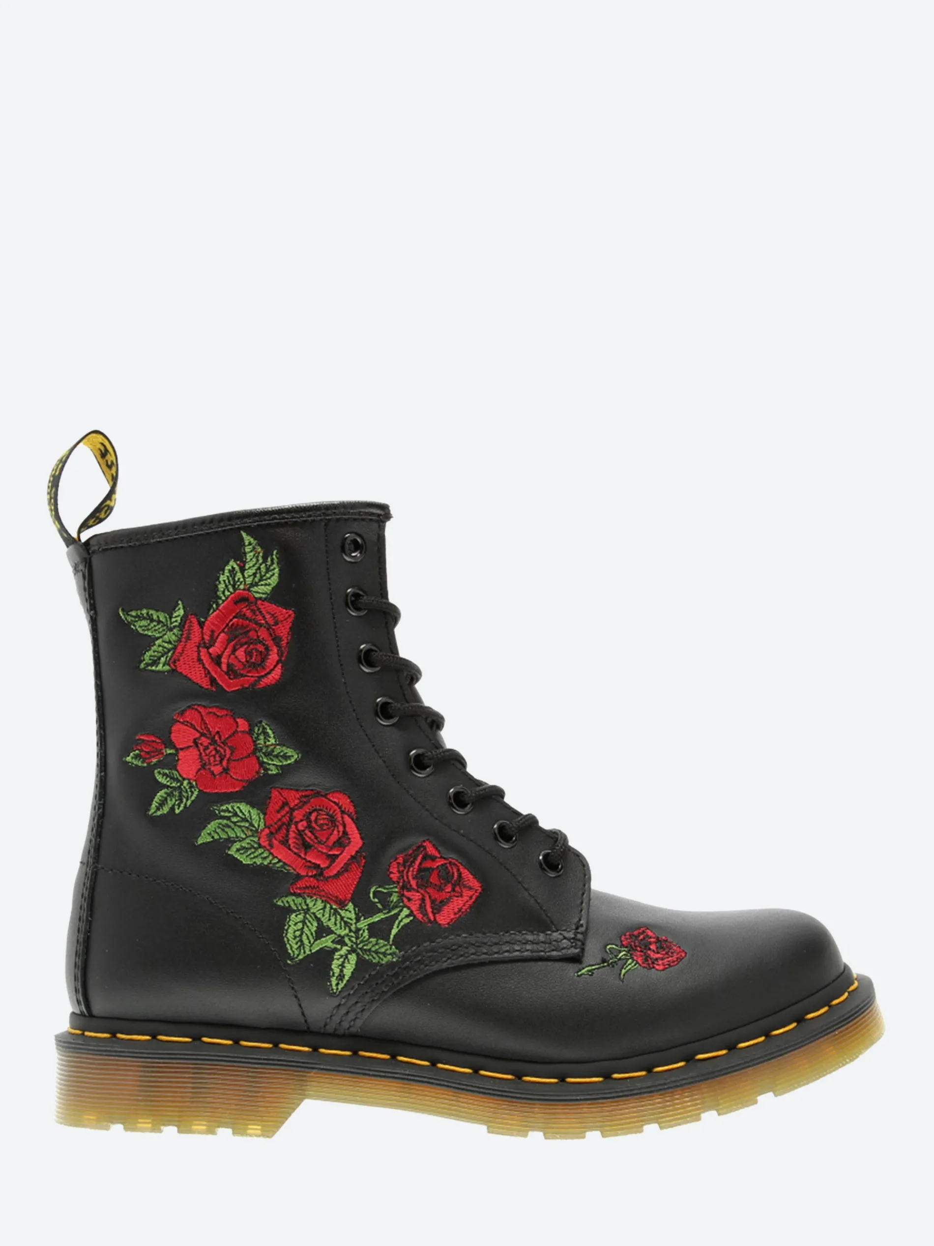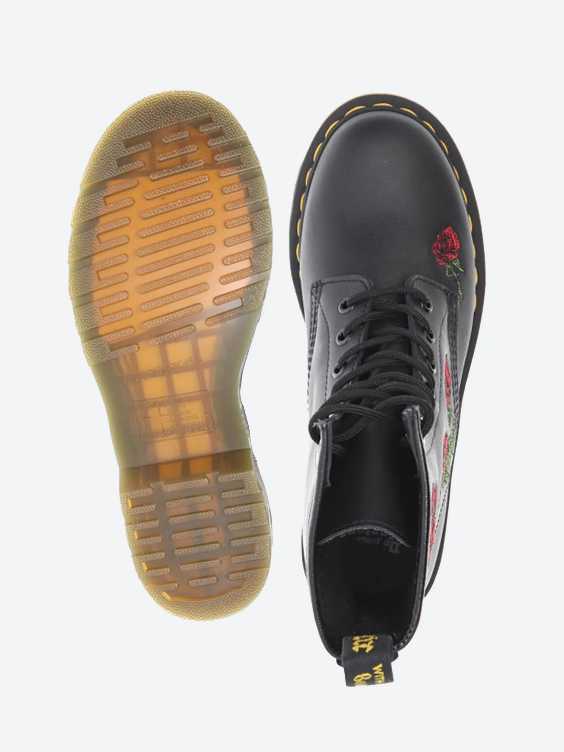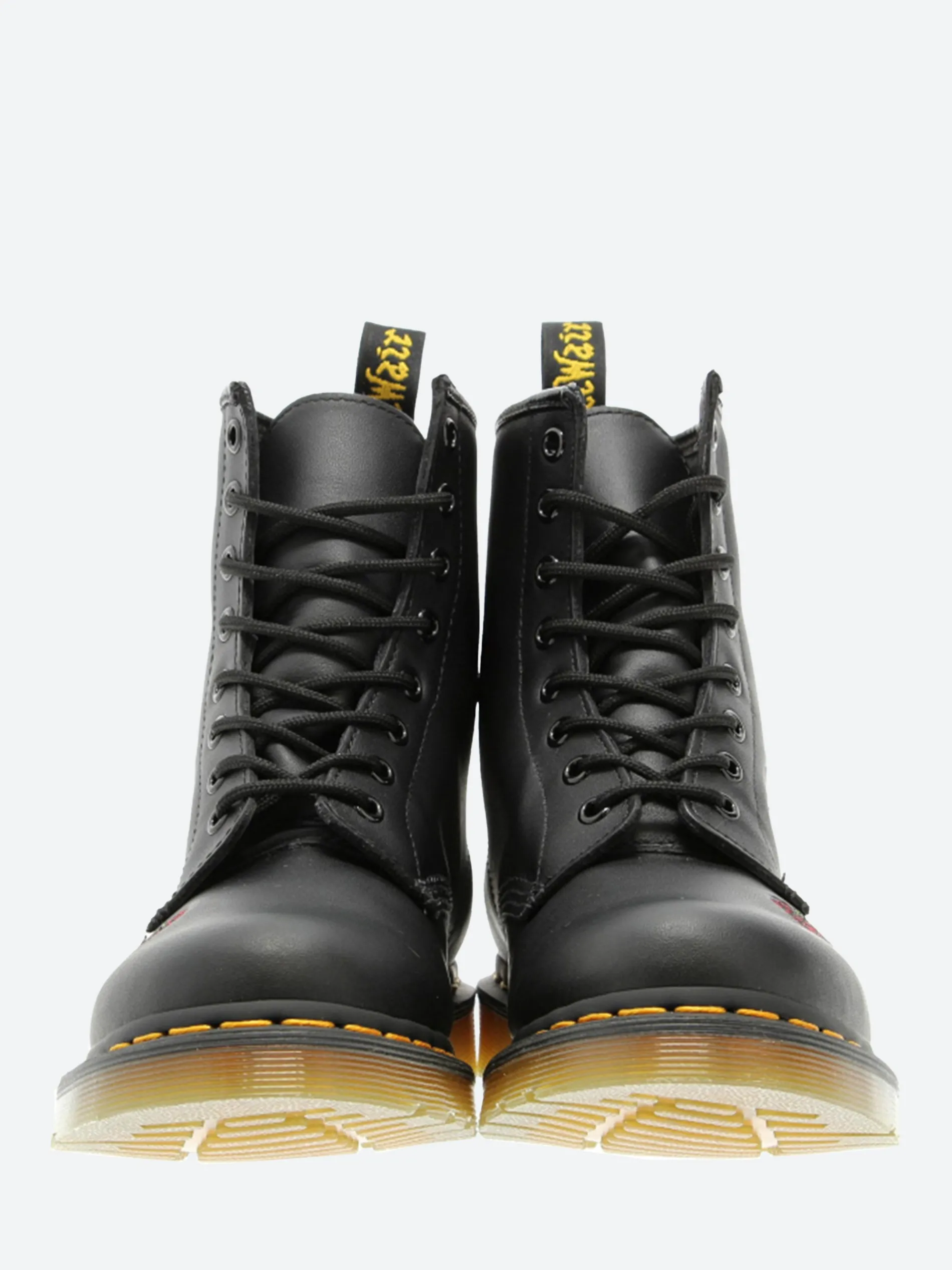 These hard-hitting boots from Docs are sprinkled with pastel embroidered flowers down the side of the boot. Detailed with brushed eyelets, the 8-eye boots have all the unmistakable markings.