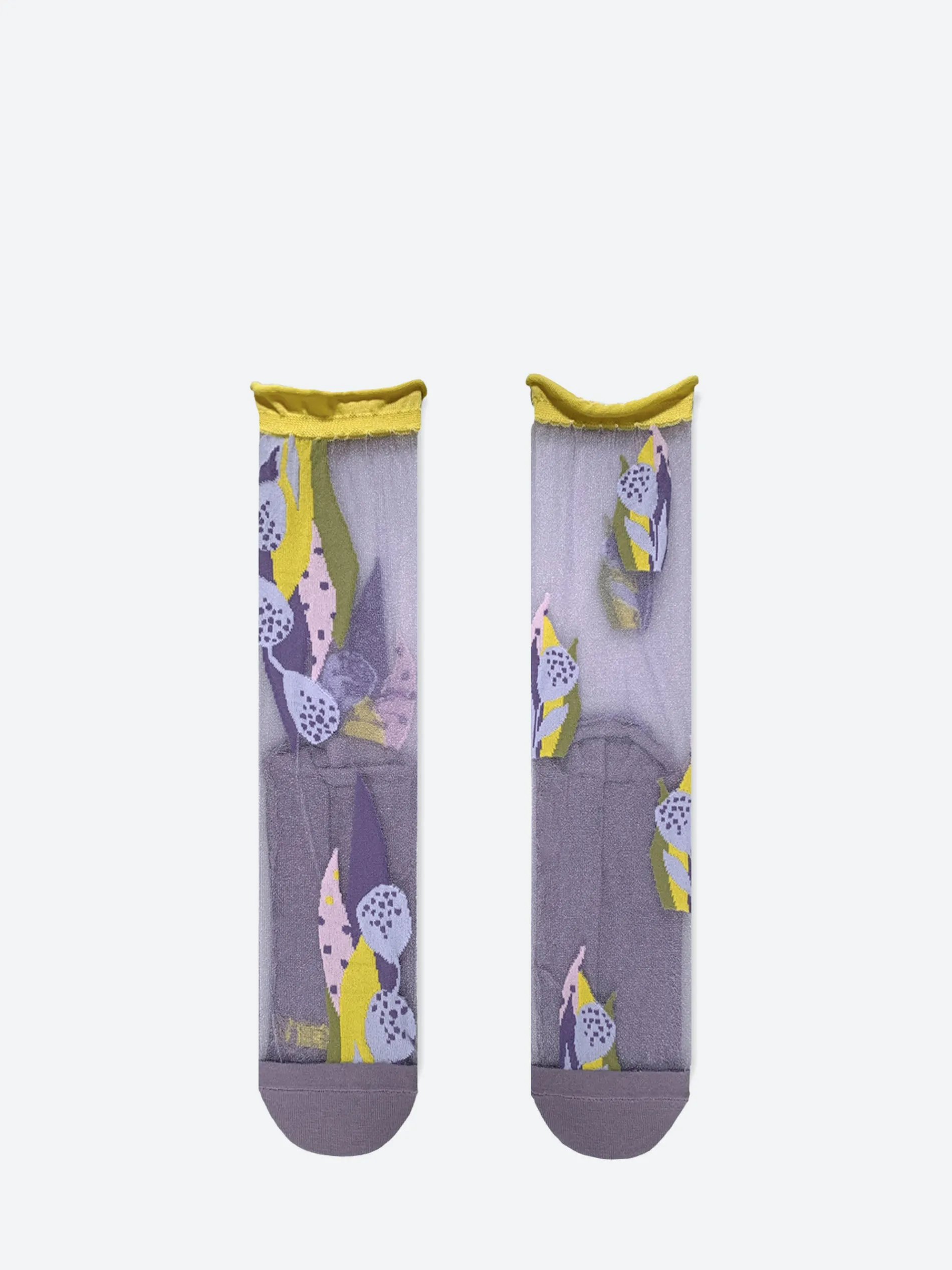 The Cotton Candy Socks from 2nd PALETTE combine sheer elegance with playful asymmetry. Made in Japan from a blend of organic cotton and nylon, they feature a lightweight, breathable feel with subtly mismatched left and right designs. The mid-calf length adds a versatile touch, perfect for everyday wear with a hint of whimsy.