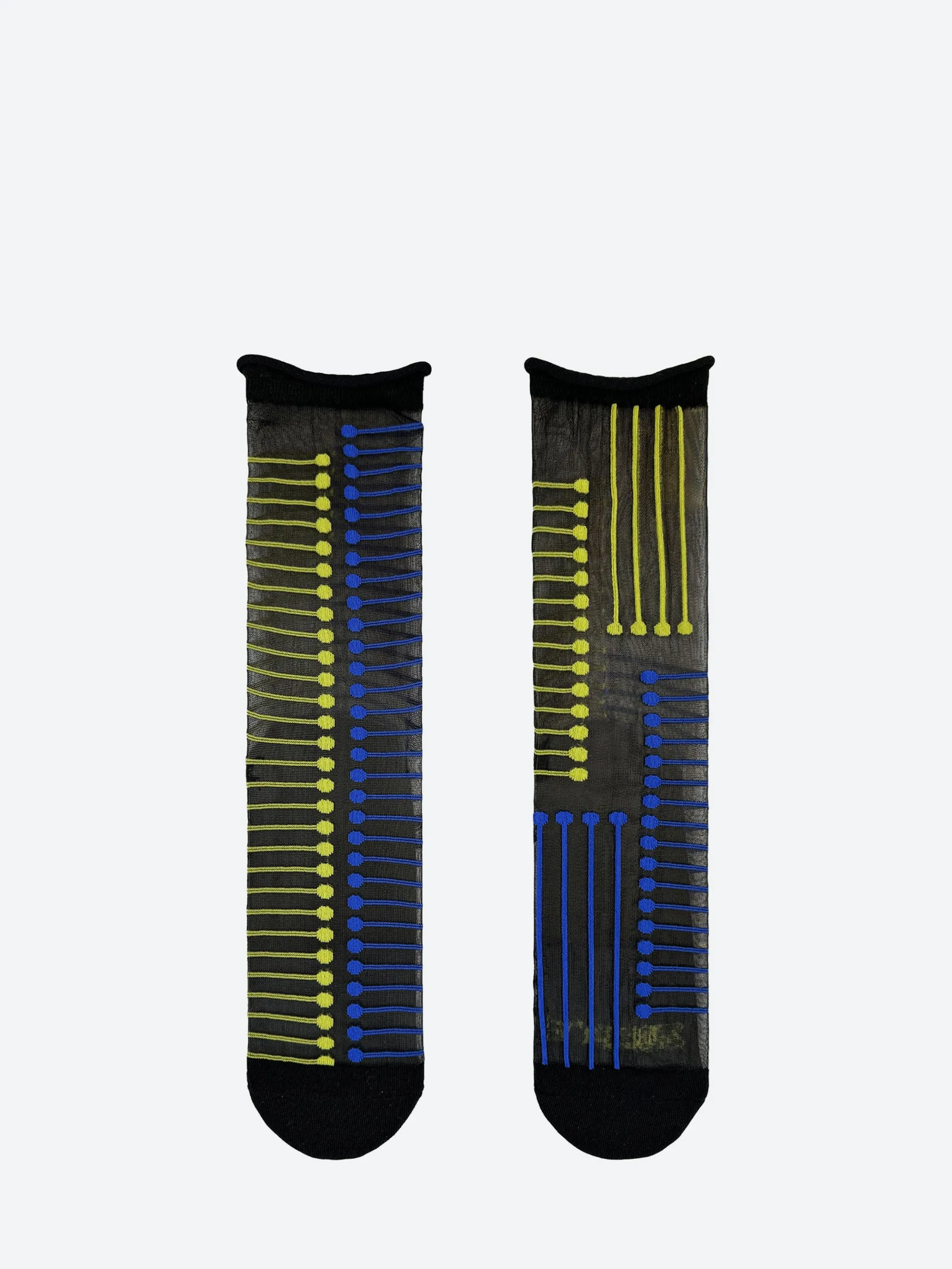 A signature of 2nd PALETTE, these sheer socks feature asymmetrical left and right designs.