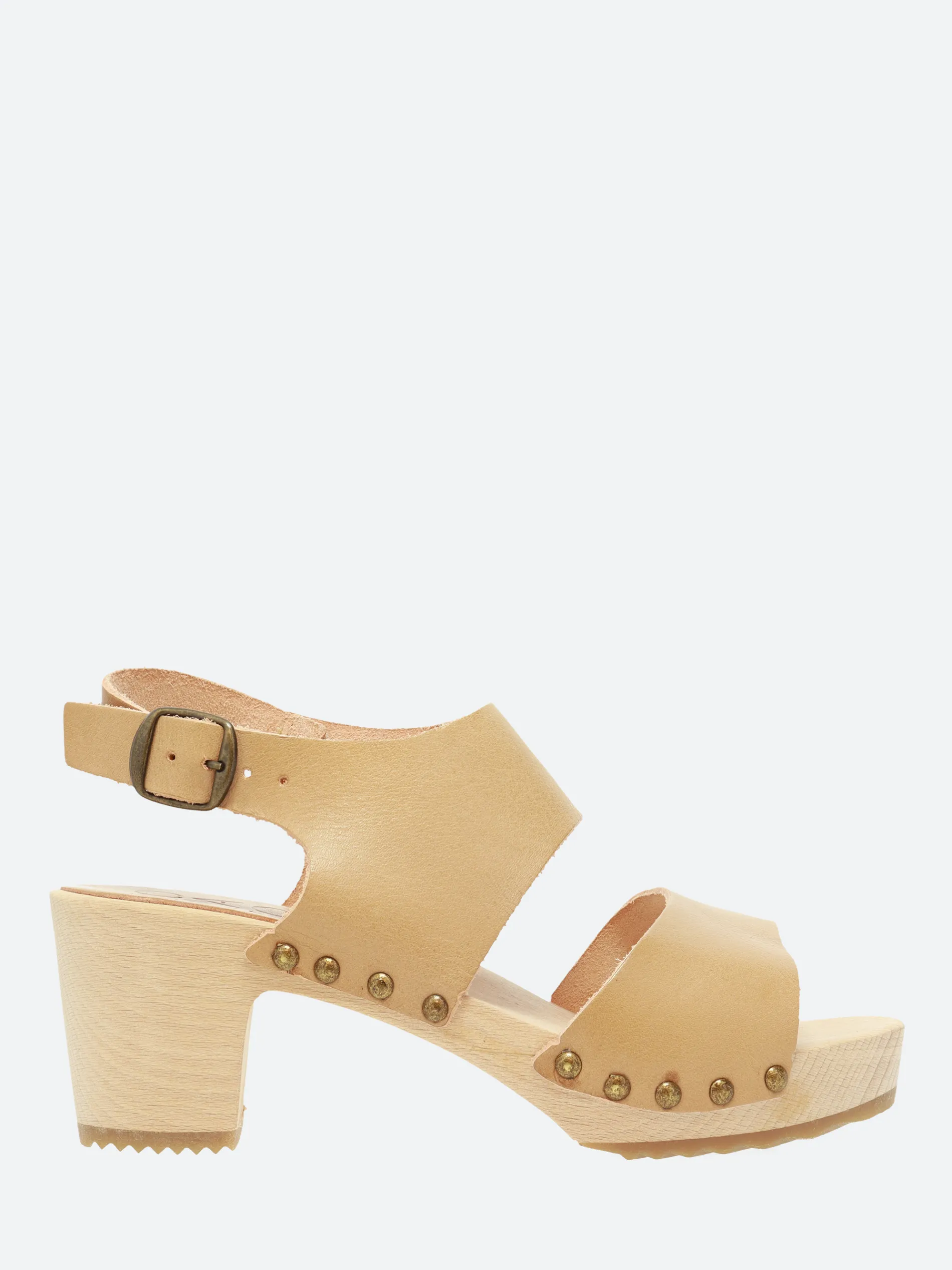 Outsole: wood with rubber inserts