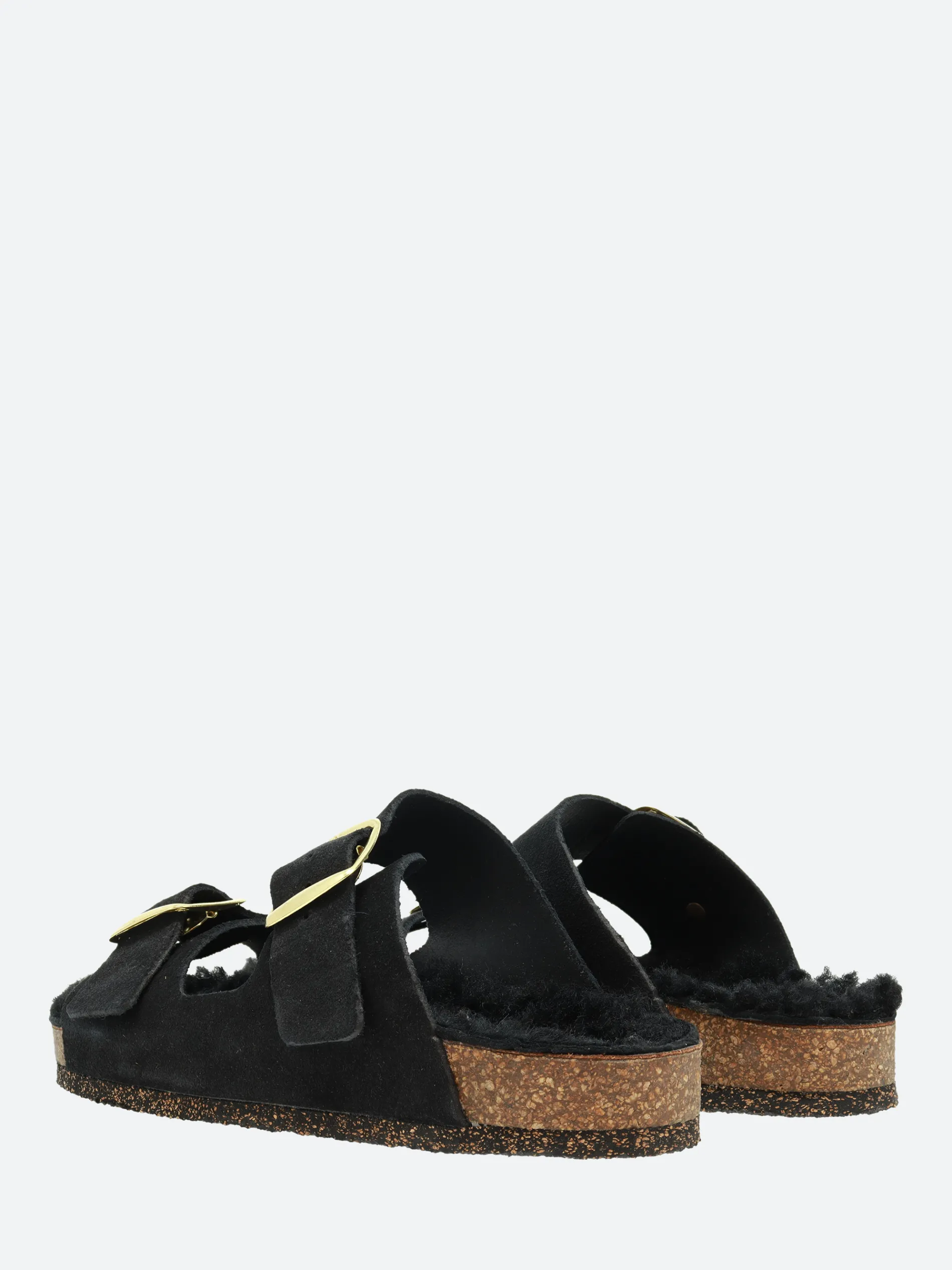 Sandal with nubuck leather upper and sheepskin leather insole.