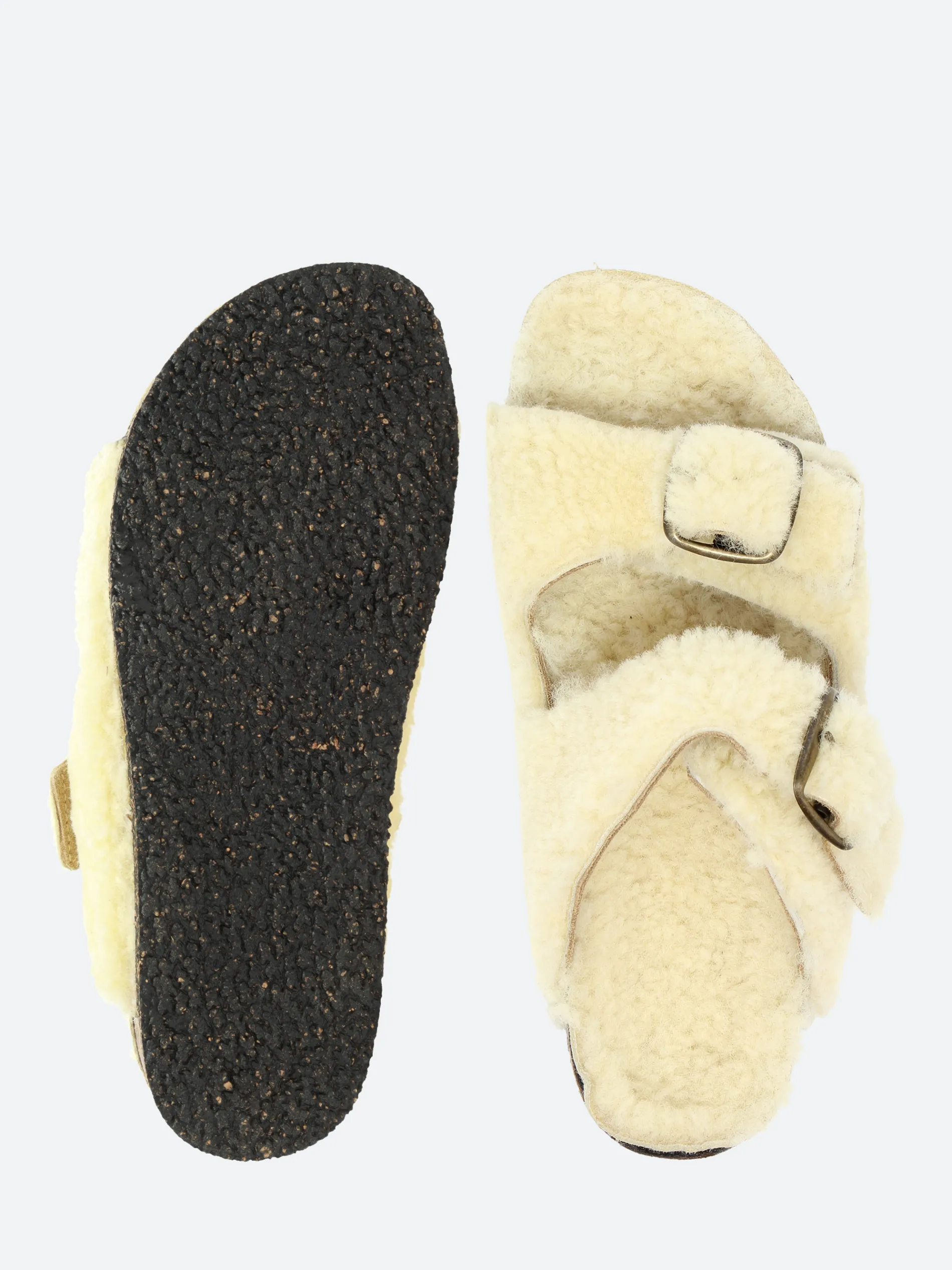 Sandal with sheepskin leather upper and sheepskin leather insole.