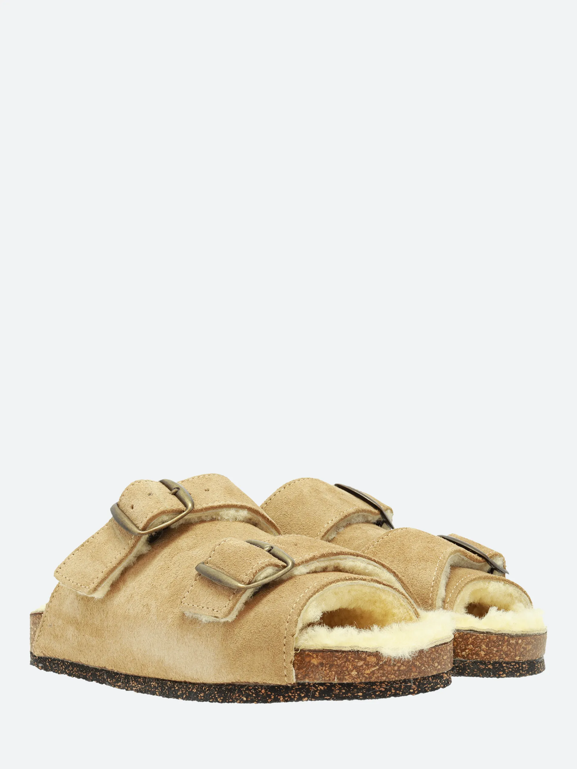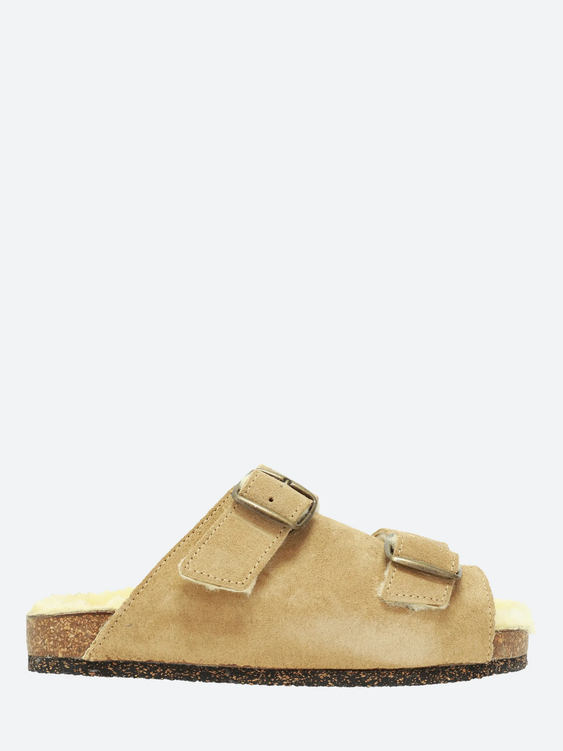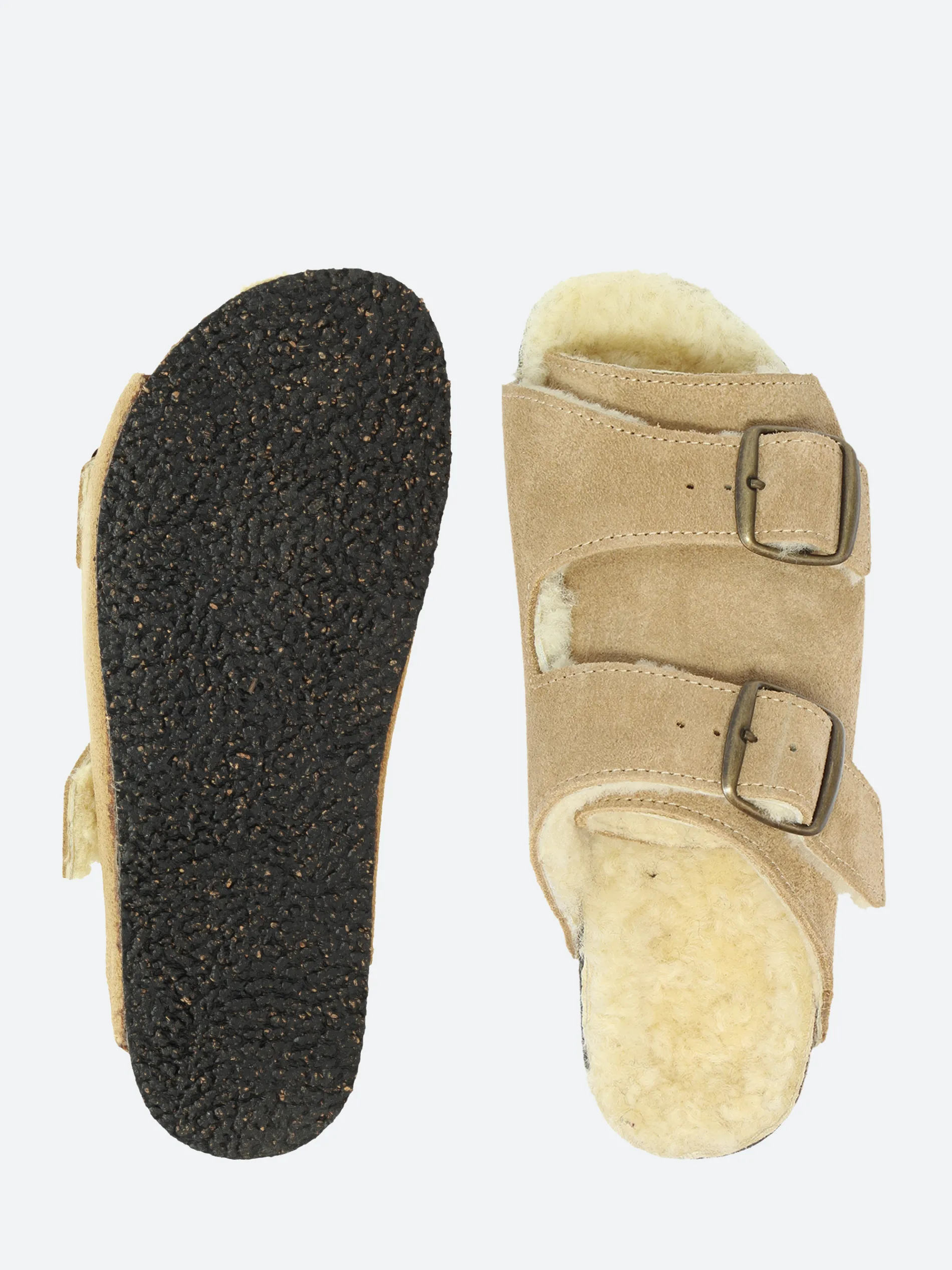 Sandal with nubuck leather upper and sheepskin leather insole.