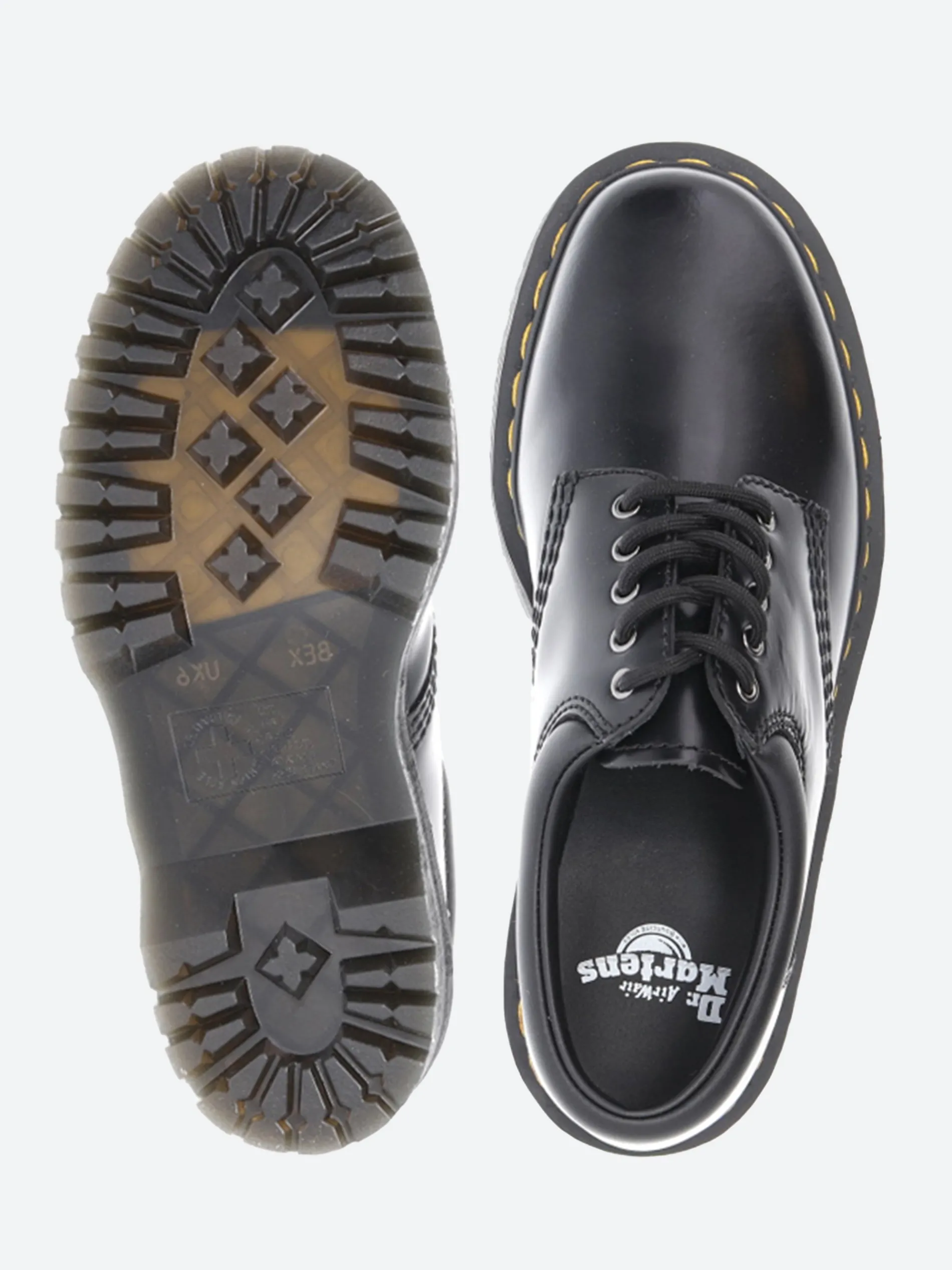 Dr. Martens 8053 shoe is made with a padded collar and air-cushioned soles. Comes with an empowering 1.5″ platform sole and high-shine leather.