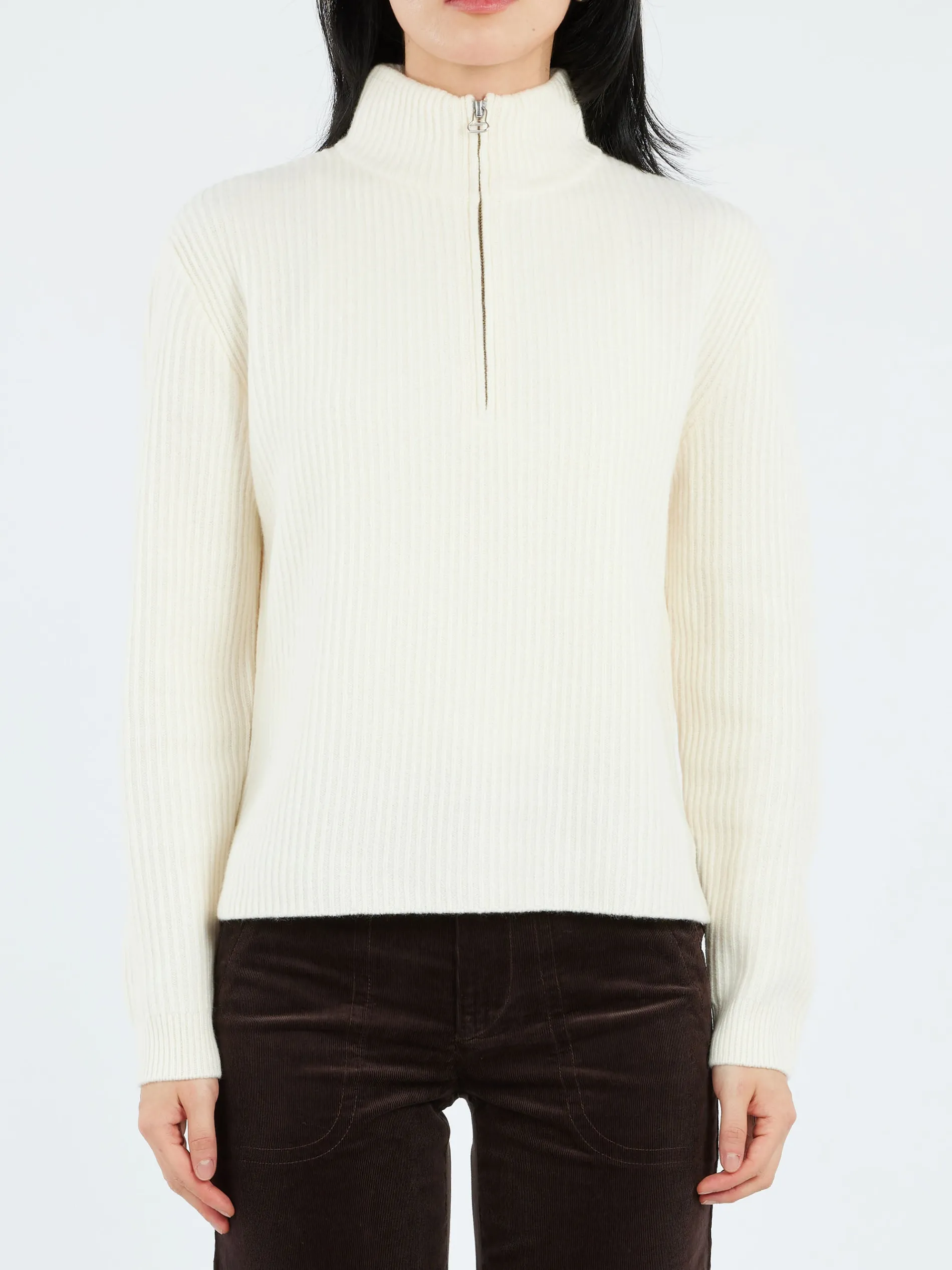 A.P.C. sweater in thick merino wool. It features a high-collar zipper for adjustable comfort.
