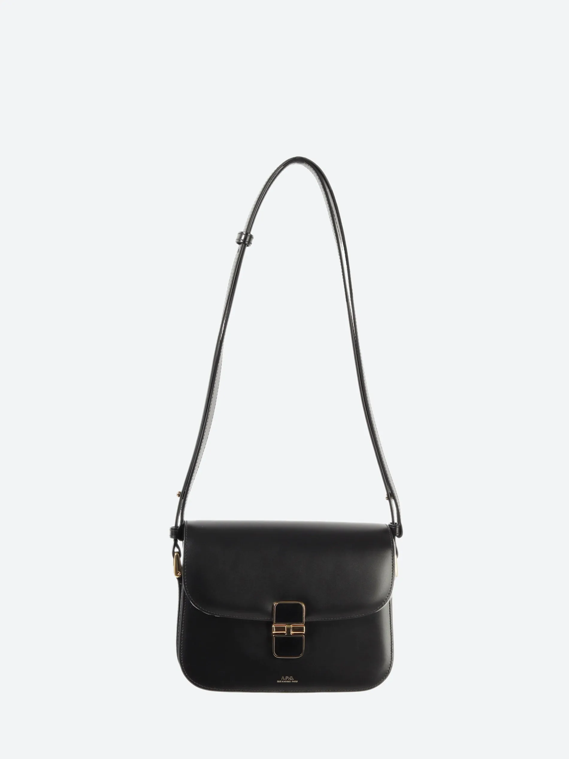 A.P.C. Grace Small bag with a streamlined trapezoidal silhouette and gold-tone hardware.