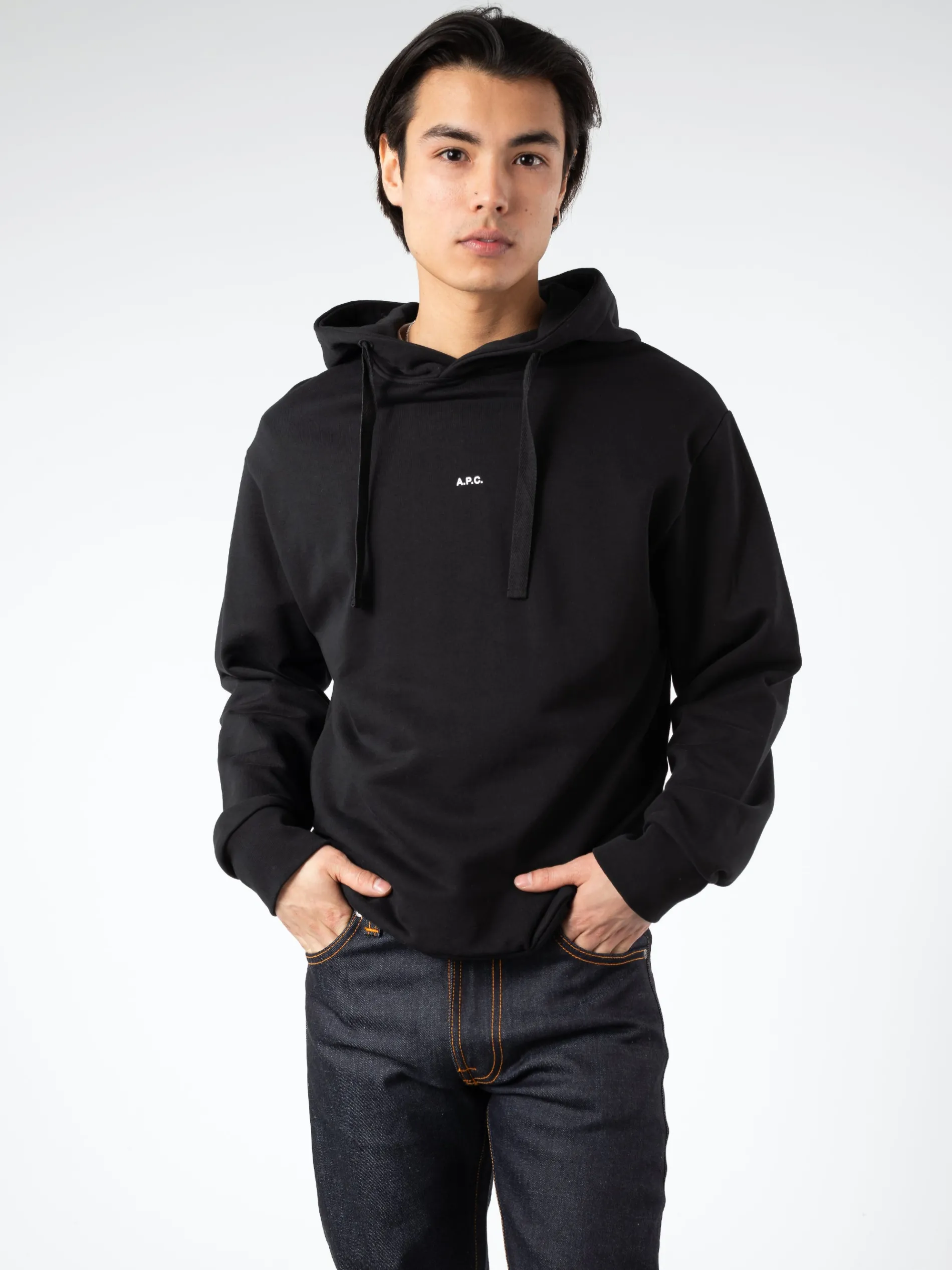 A.P.C. Larry is a loose-fit hoodie cut from soft loopback cotton jersey with a micro logo at the chest. A staple season after season.