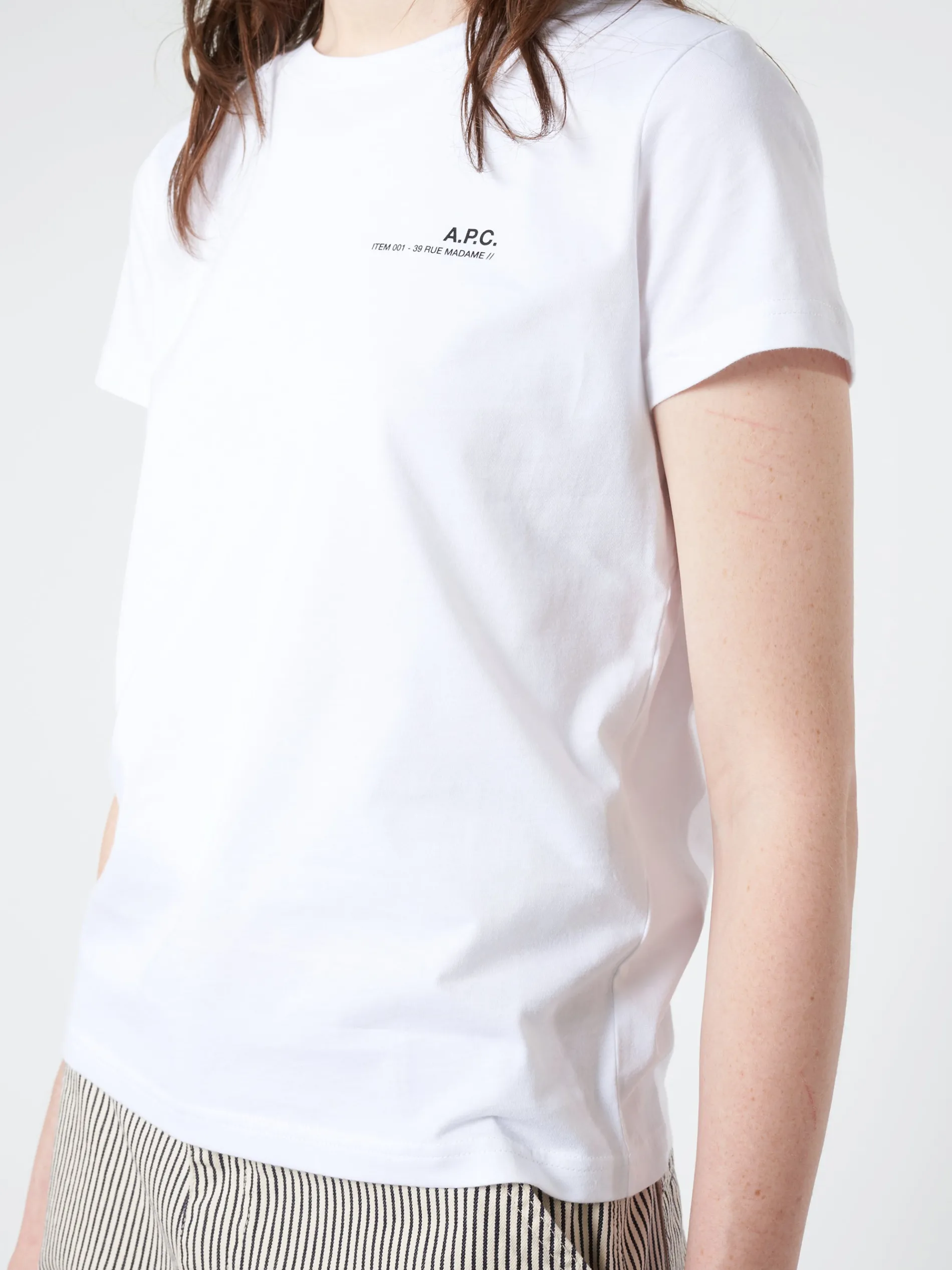 - ‘A.P.C. ITEM 0001 – 39 RUE MADAME’ logo on chest