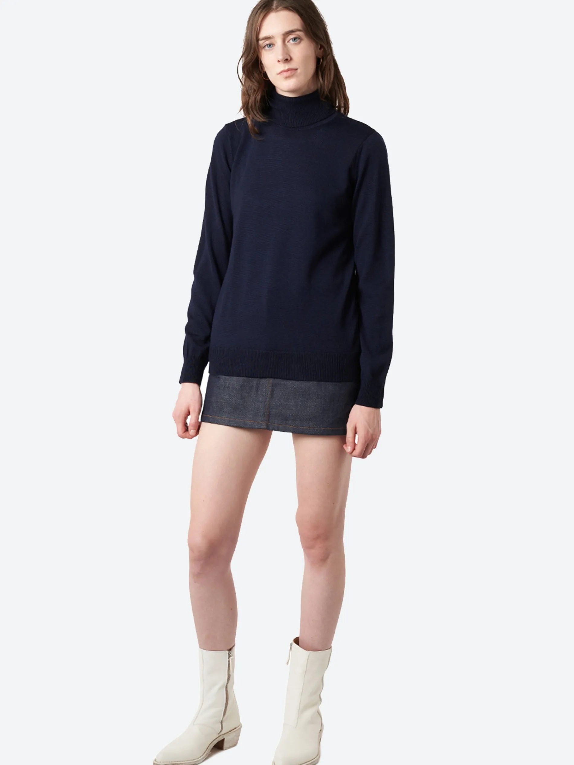 A.P.C. Sandra turtleneck sweater knitted from fine merino wool which is soft and light. An understated knit made in Italy.