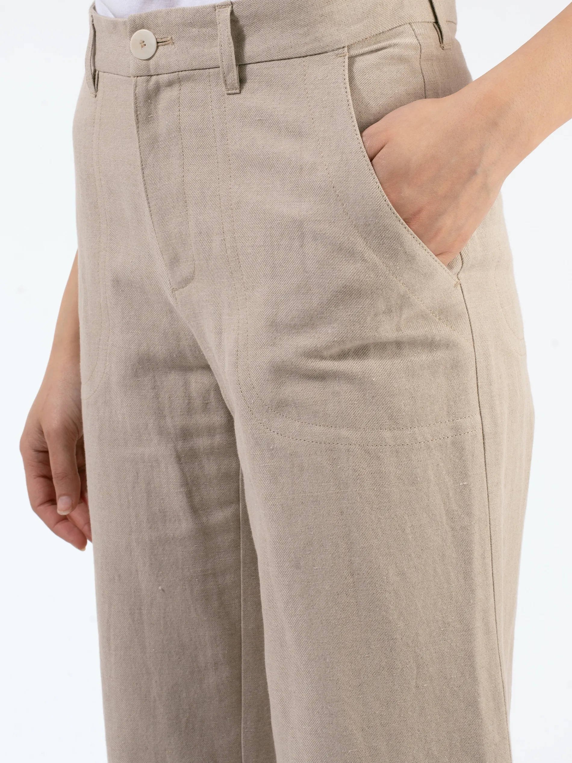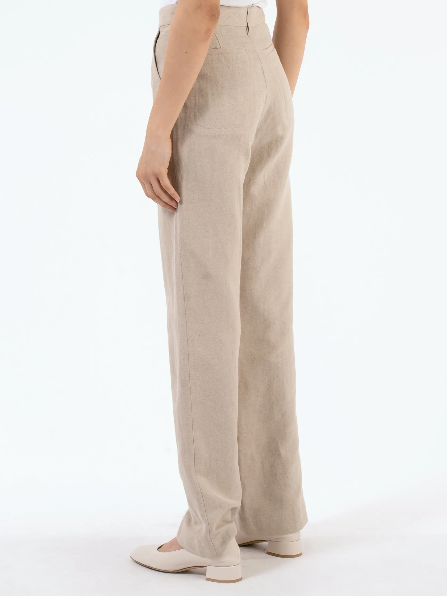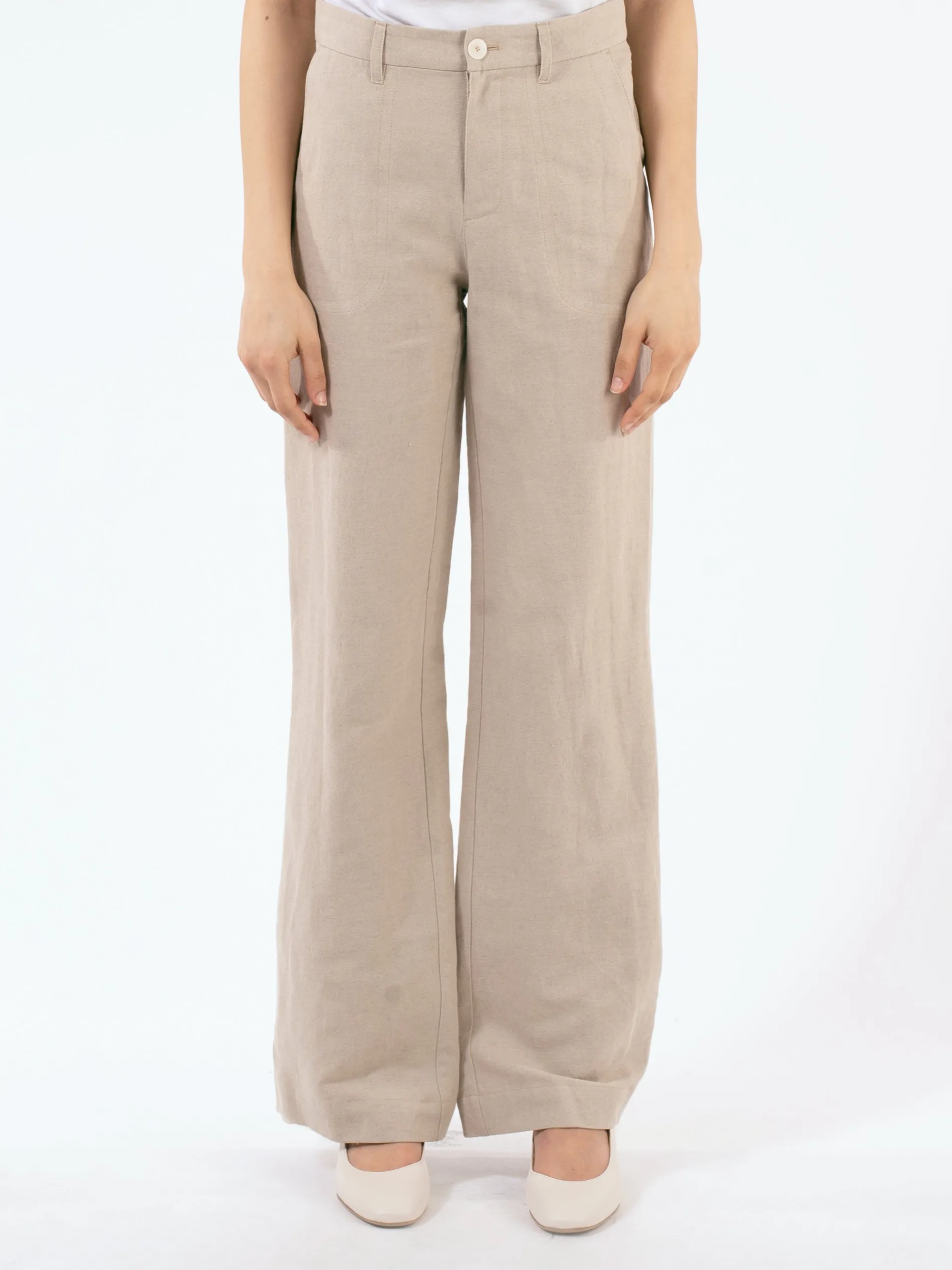 A.P.C. pants in a cotton-linen blend with flared legs.