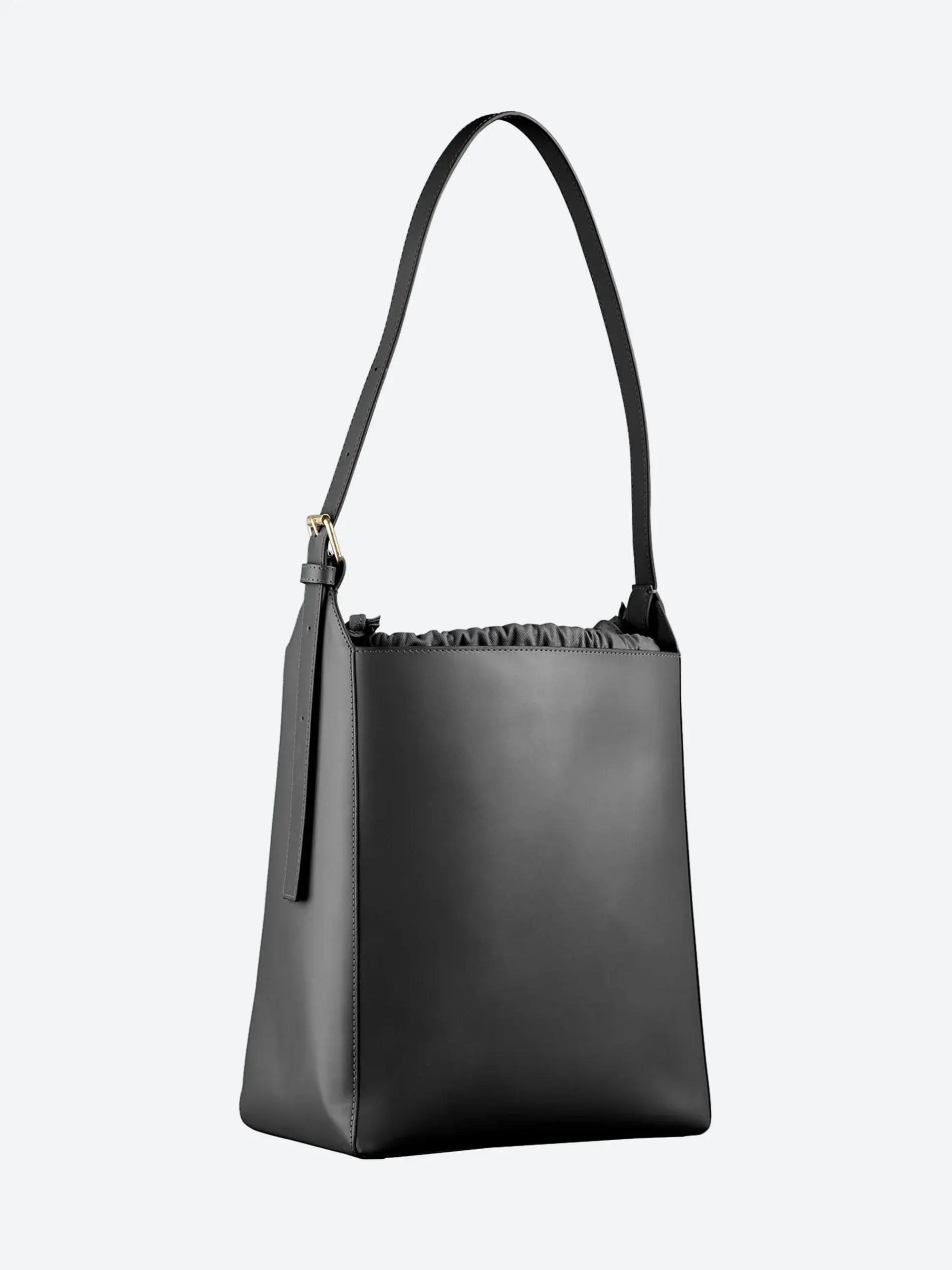 A.P.C. Virgine Bag, a trapezoid-shaped shoulder bag in smooth leather.