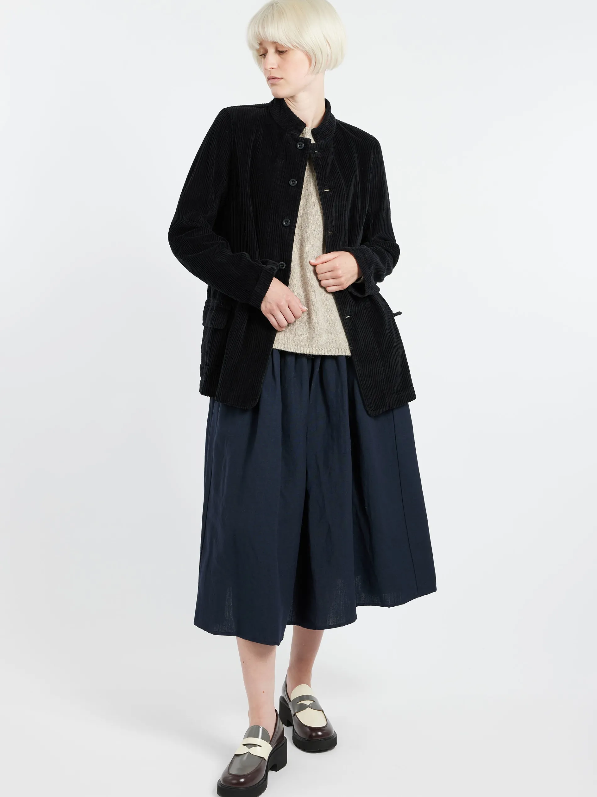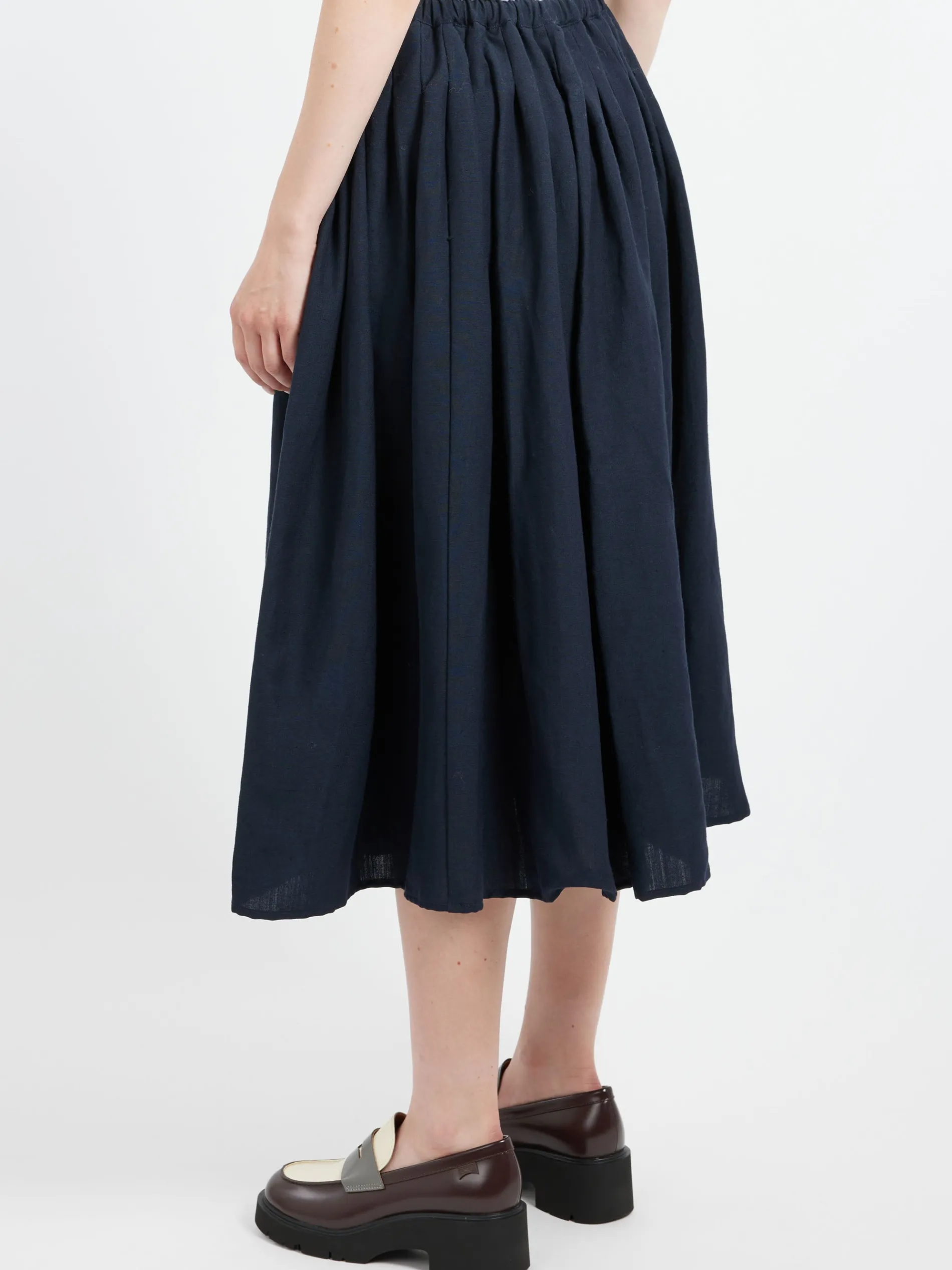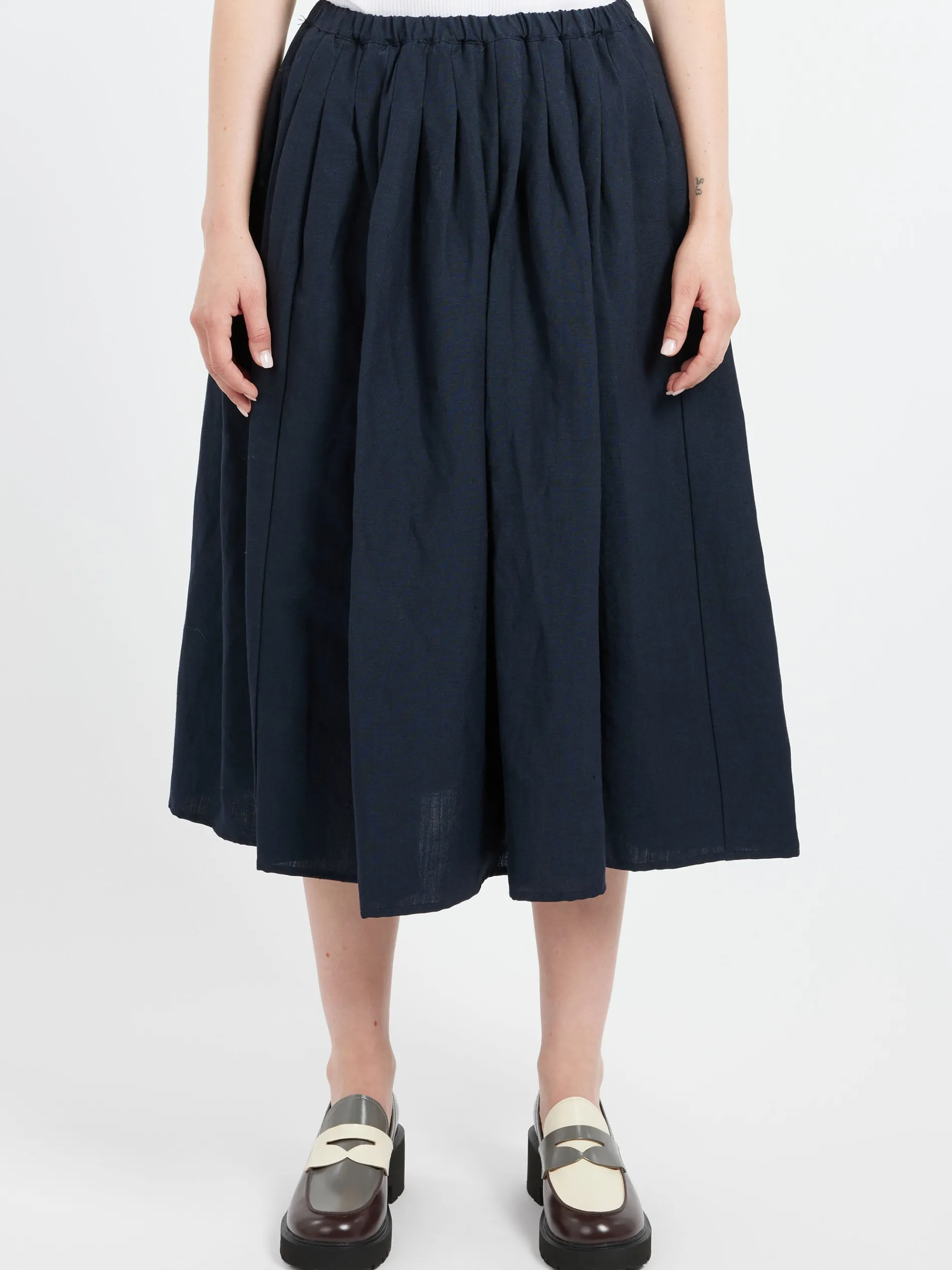 A Punto B A-line, midi-length skirt with pintuck pleats made from a linen-wool blend.