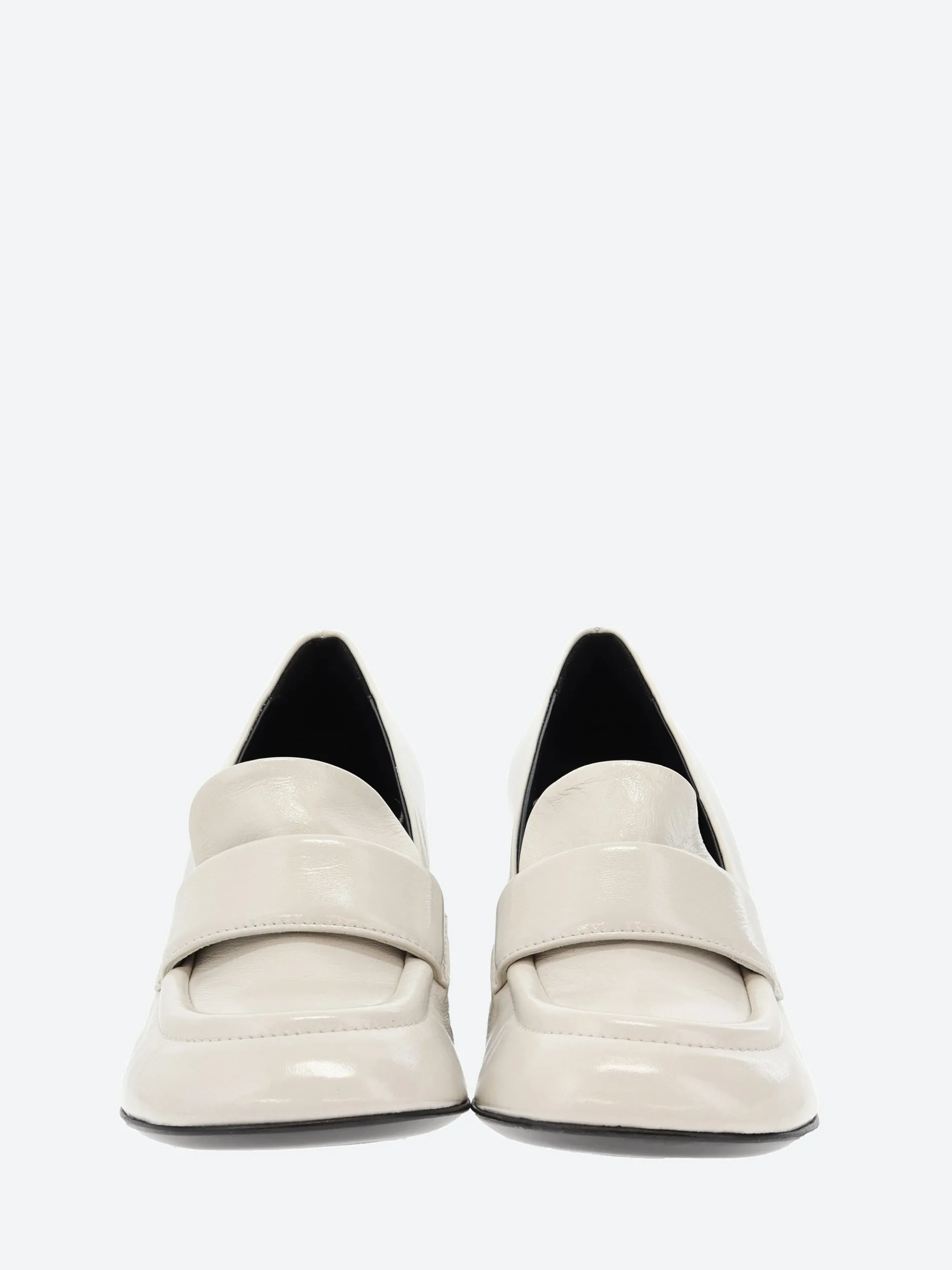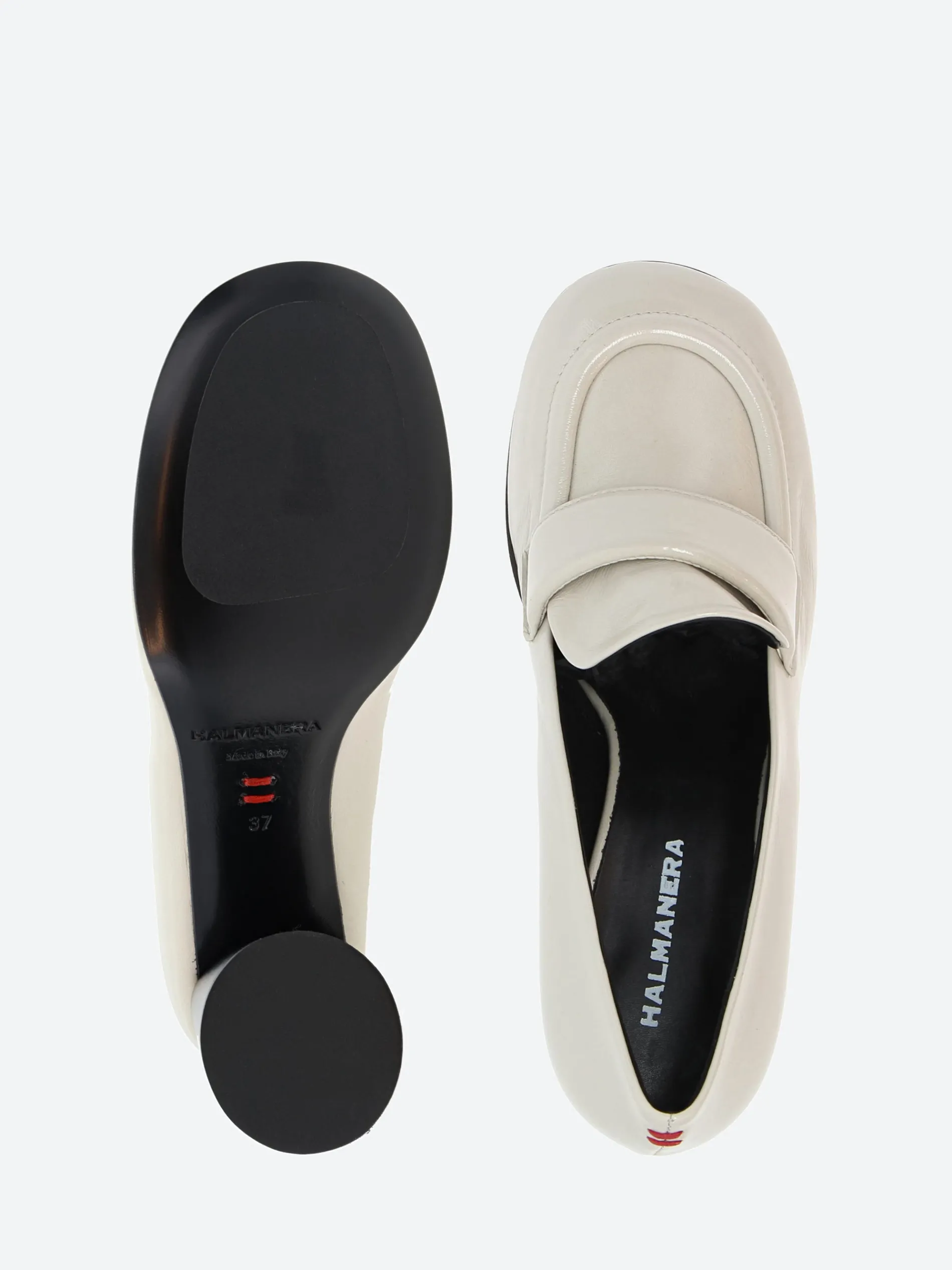 Halmanera heeled loafer in shiny leather. A slip-on style for easy on and off.