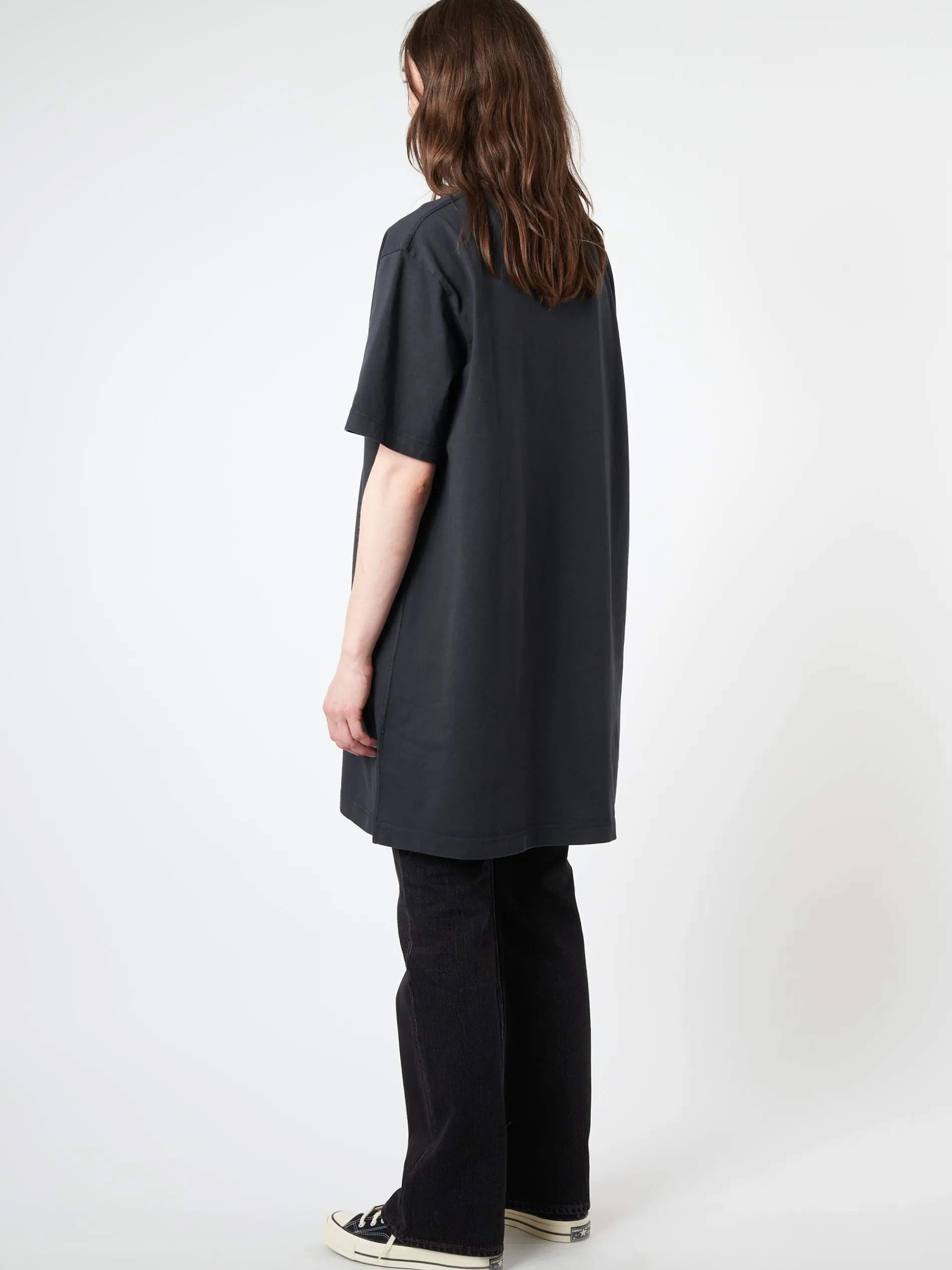 A casual t-shirt dress is made of cotton with an Acne Studios logo at the center front.