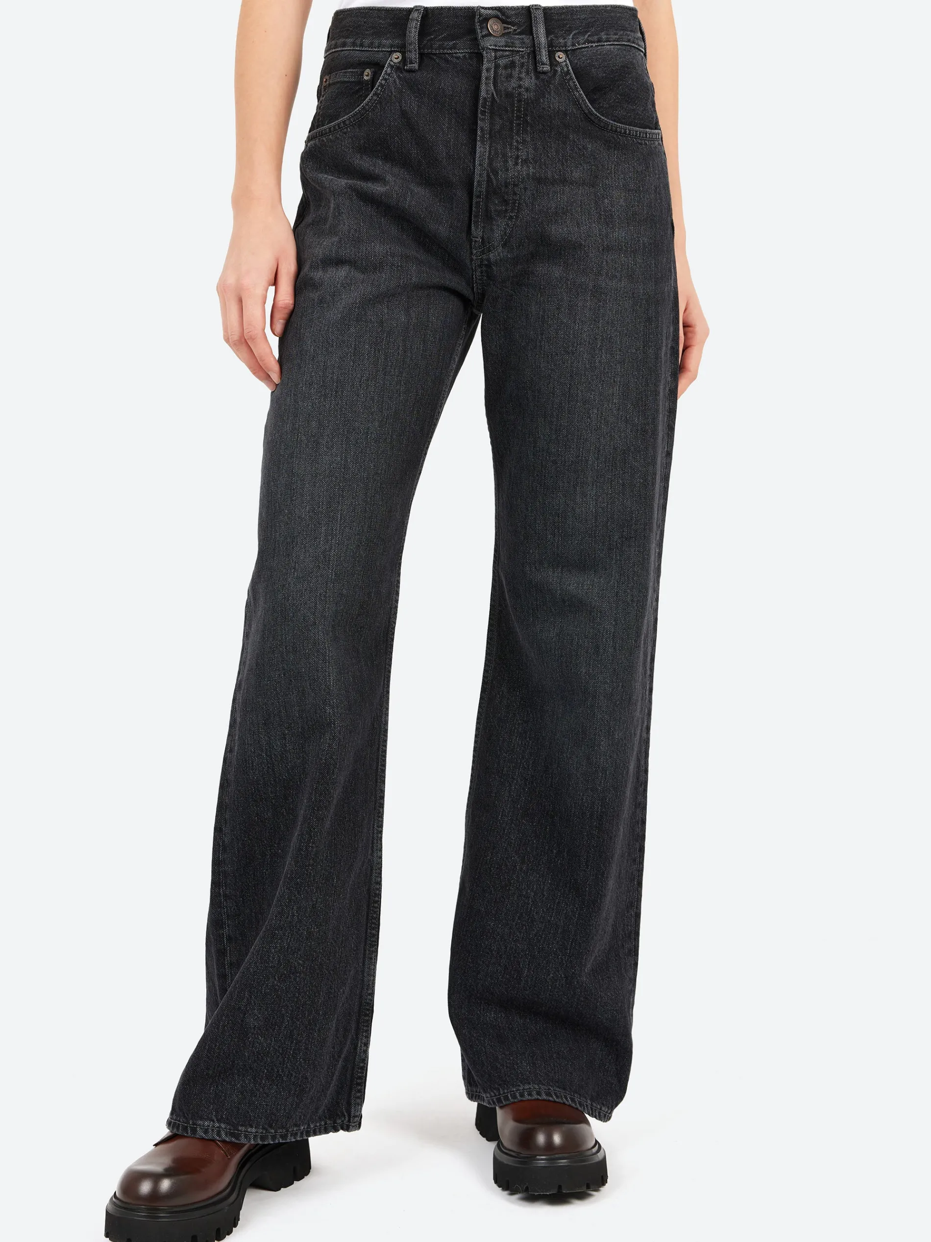 2021 jeans are cut to a loose fit with mid-waist, wide leg and long length. Made from rigid denim in a dark wash.