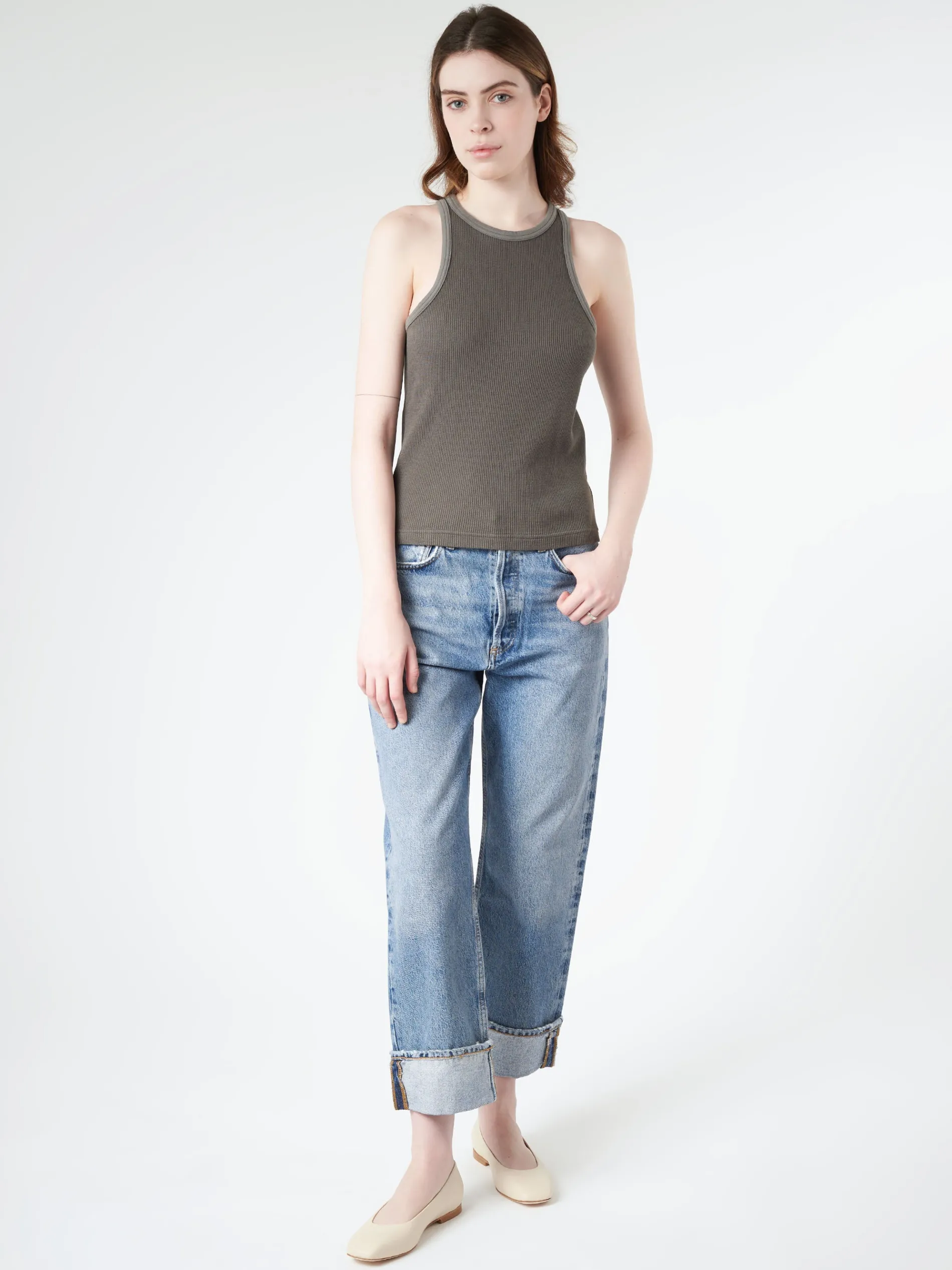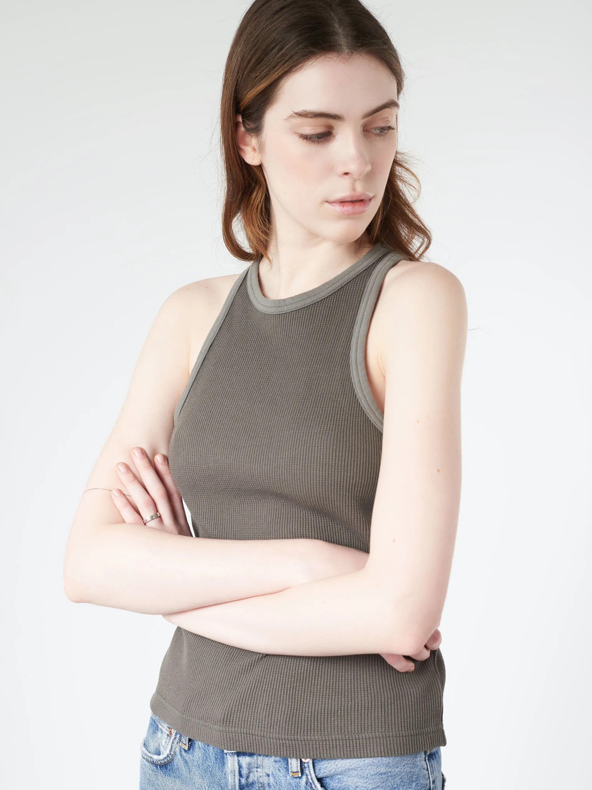 This tank boasts a ribbed design in a delicate pink color. It is expertly made from stretchy cotton for maximum comfort.