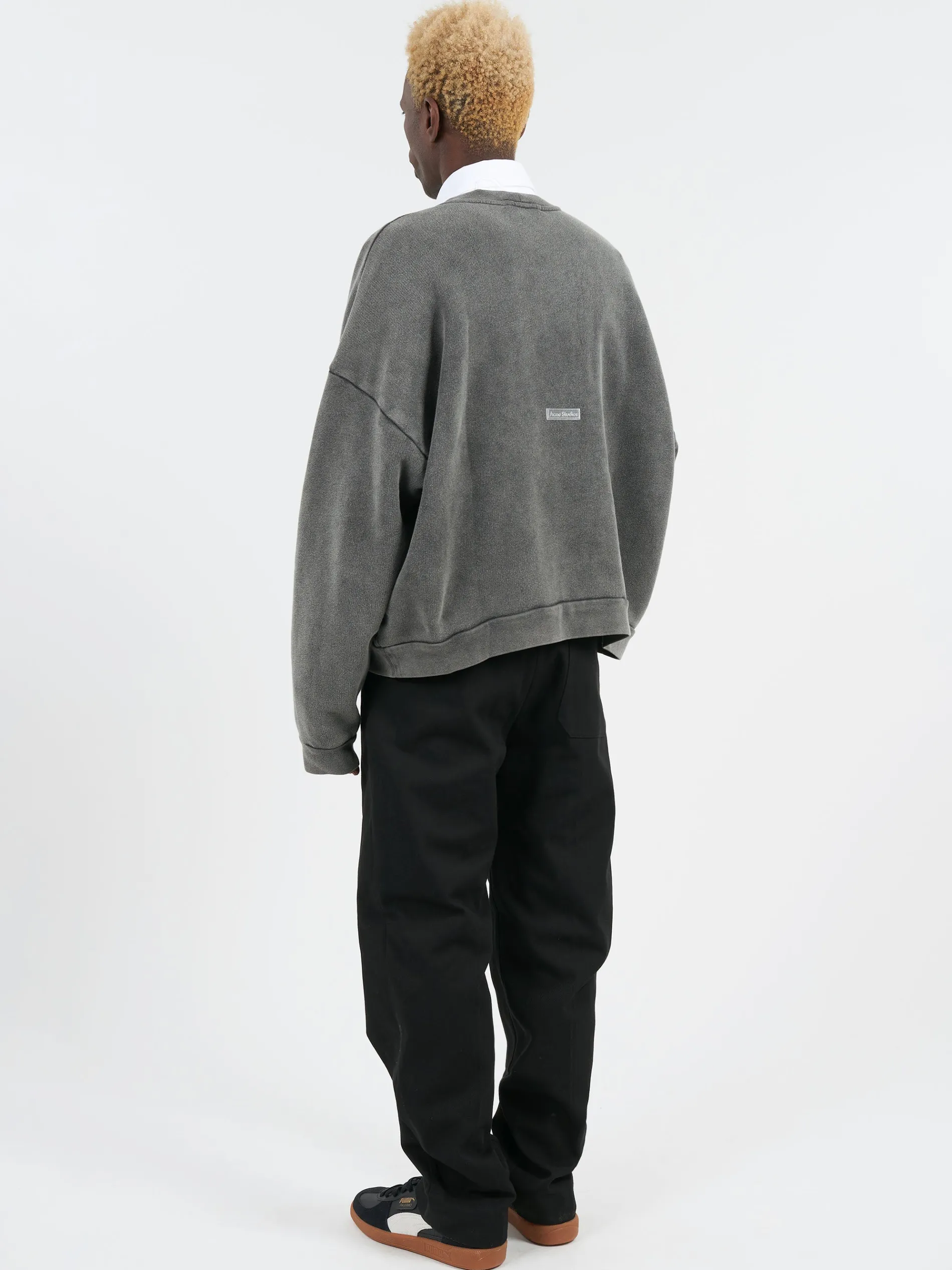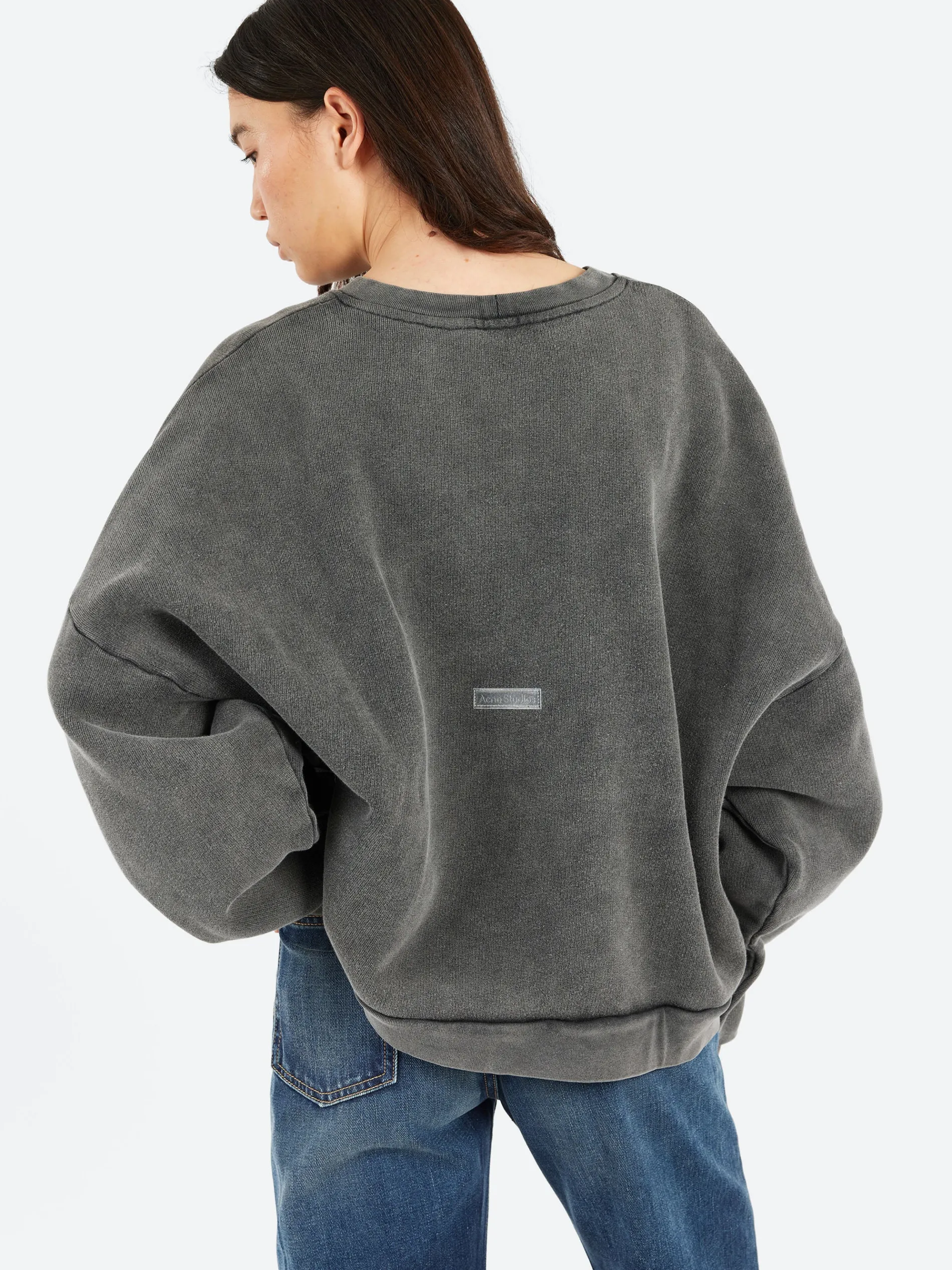 Crew neck sweater features an Acne Studios logo rubber patch at the center back, crafted from midweight cotton with a garment-dyed finish.