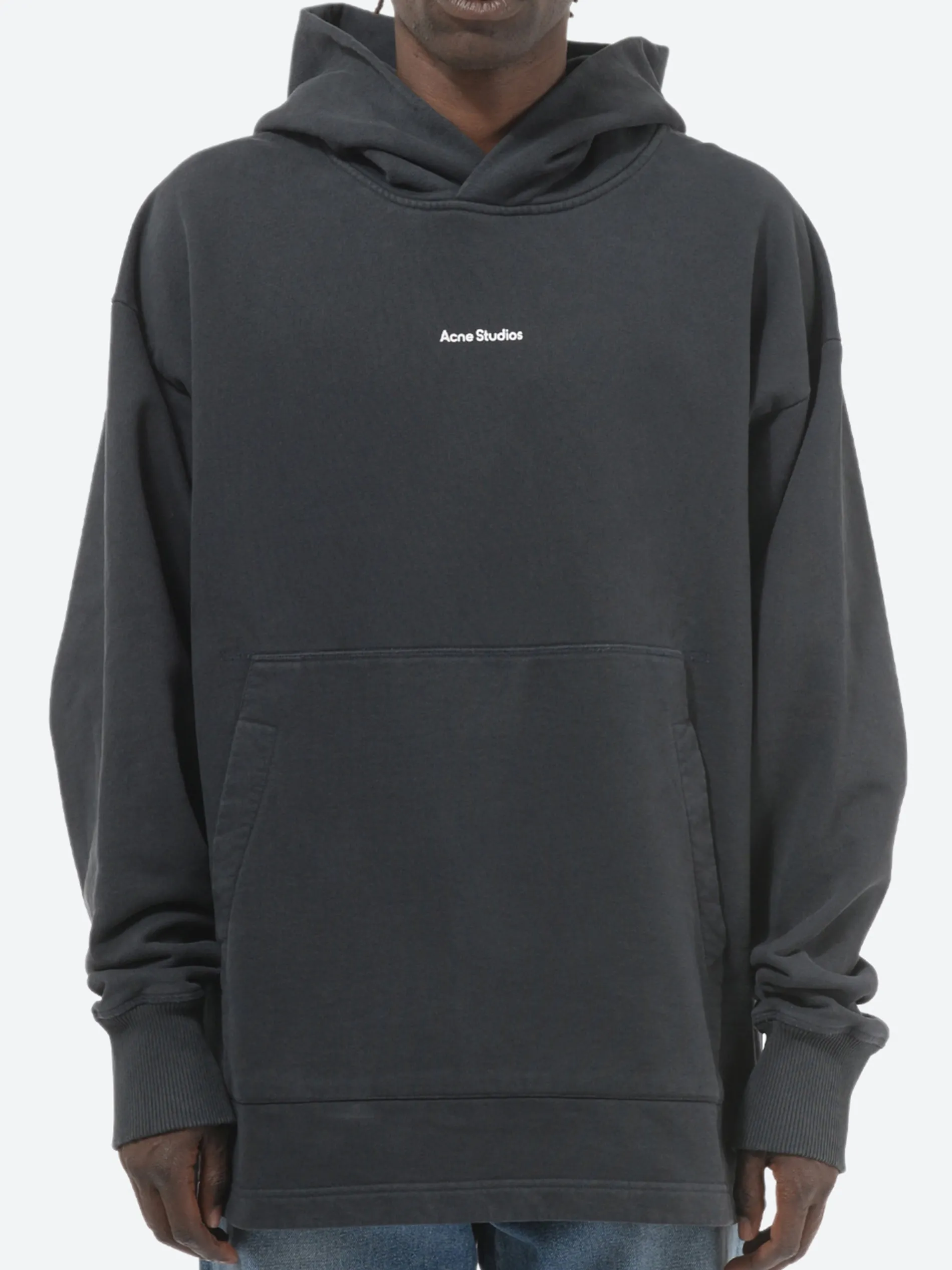 Acne Studios hooded sweatshirt is crafted from organically grown cotton that’s garment dyed for a soft, washed out finish. It’s cut for an oversized fit that drapes loosely over the frame.