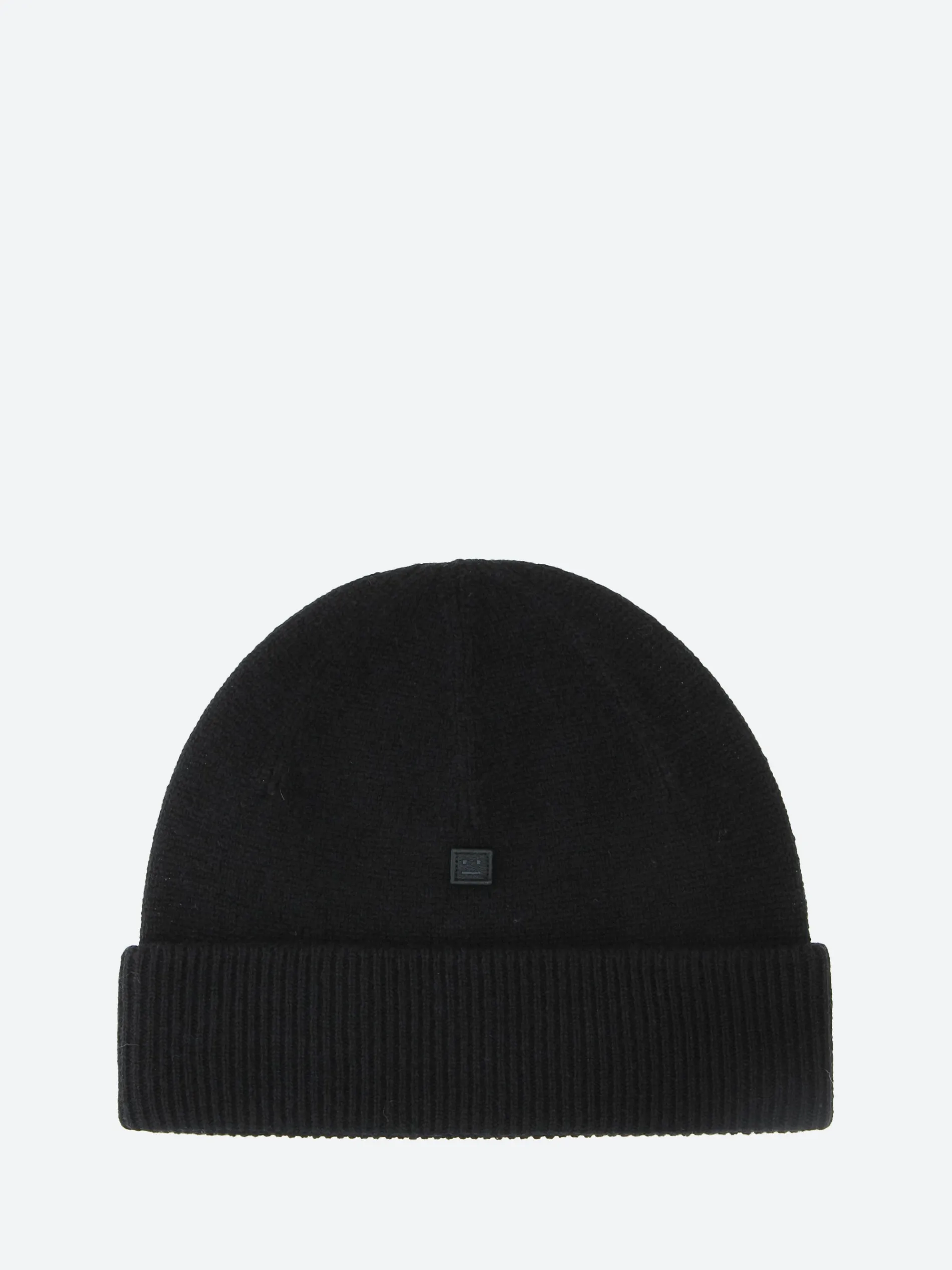 Acne Studios knit beanie features a micro face logo patch and is crafted from lightweight ribbed wool.