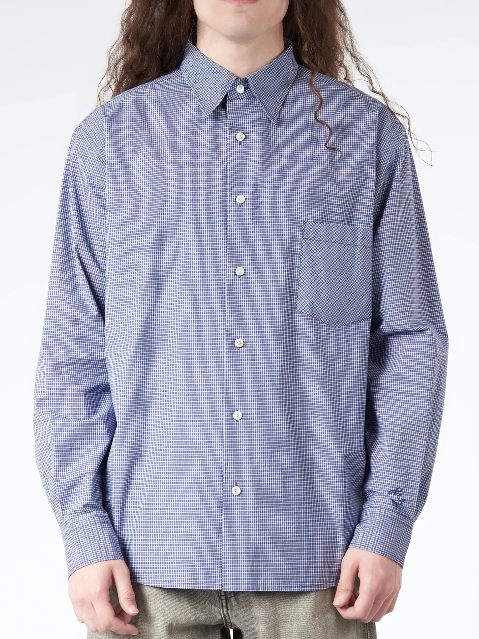 Casual long sleeve shirt is cut to a regular fit and below hip length. Crafted from cotton with a check pattern.