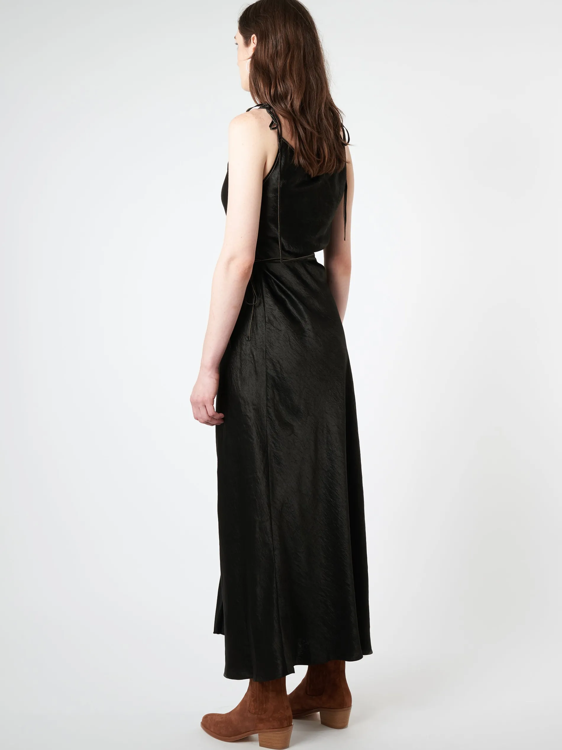 Acne Studios strap dress is crafted from a fluid satin fabric with a tie-up wrap construction and pleated waist detailing.