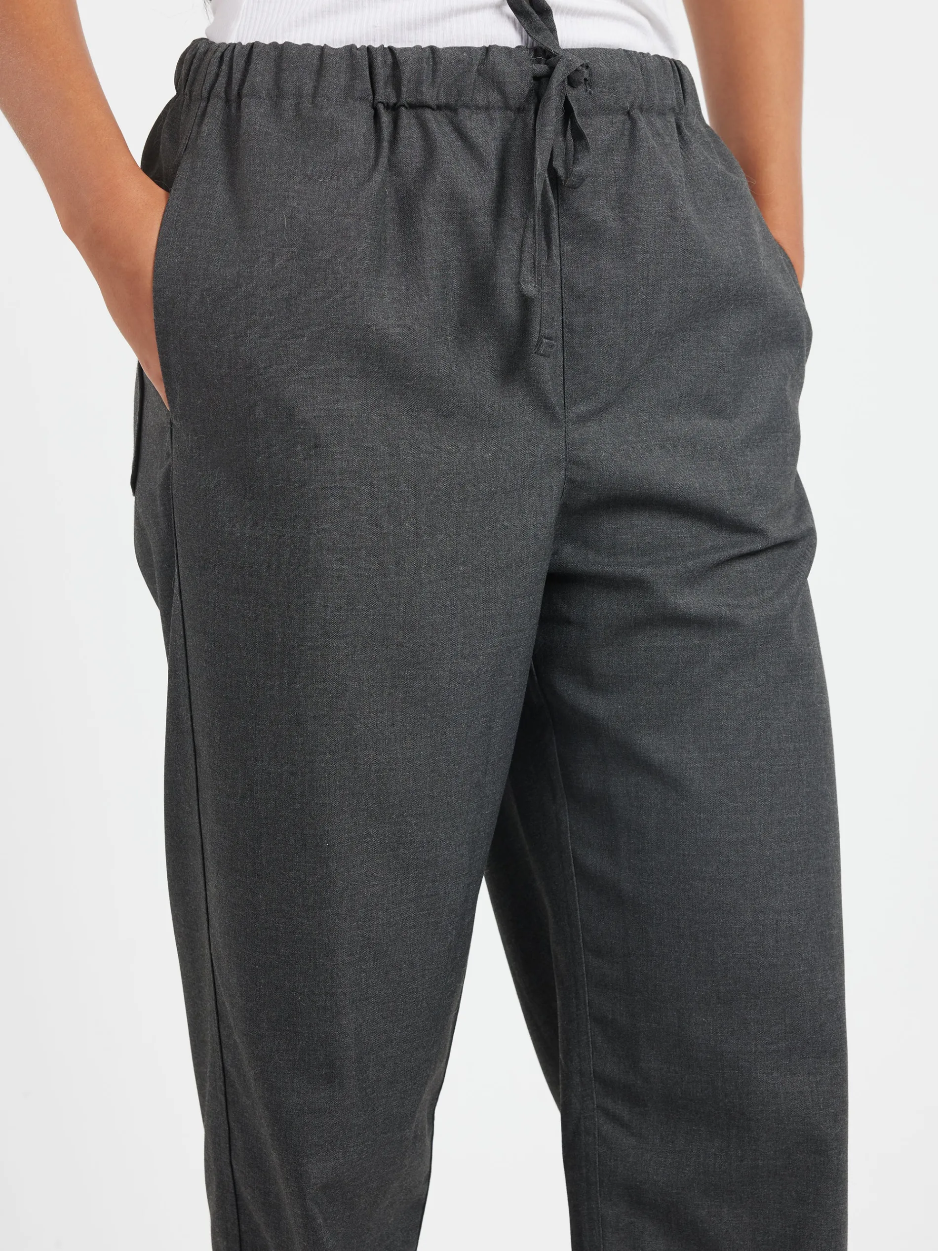 Pyjamas inspired trouser with an elastic drawstring waist.
