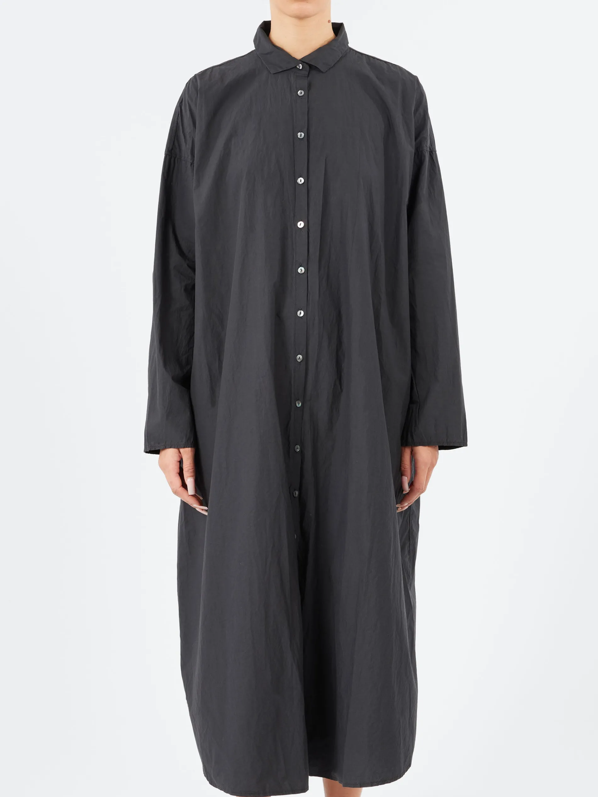 This shirt dress from Album di Famiglia is crafted from their signature TC fabric, a lightweight, papery cotton with a crisp, dry texture. It features a spread collar, a rounded hem with side splits, and functional side seam pockets. The extra-long sleeves can be rolled up for a more relaxed look. With its comfortable, relaxed fit, this dress offers both style and ease, making it perfect for any occasion.