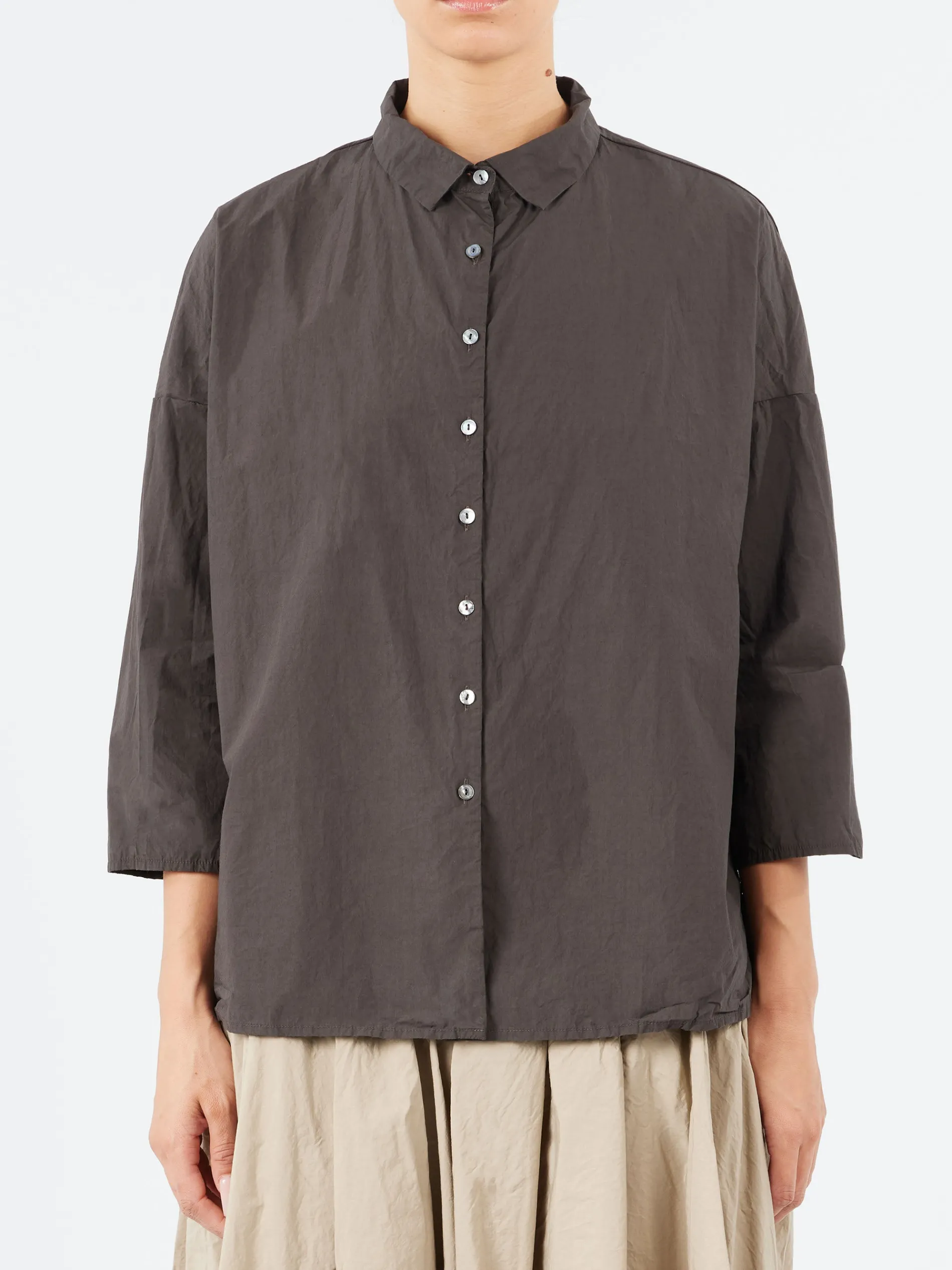 Crafted from crisp, lightweight cotton, this Album Di Famiglia shirt effortlessly blends elegance and comfort. The subtle A-line silhouette flatters the figure, while the 3/4 length sleeves offer a perfect balance of style. A mother of pearl button fastening and a small, refined collar elevate the overall design, adding a sophisticated touch. This versatile shirt is ideal for any occasion, offering timeless style and a perfect fit.