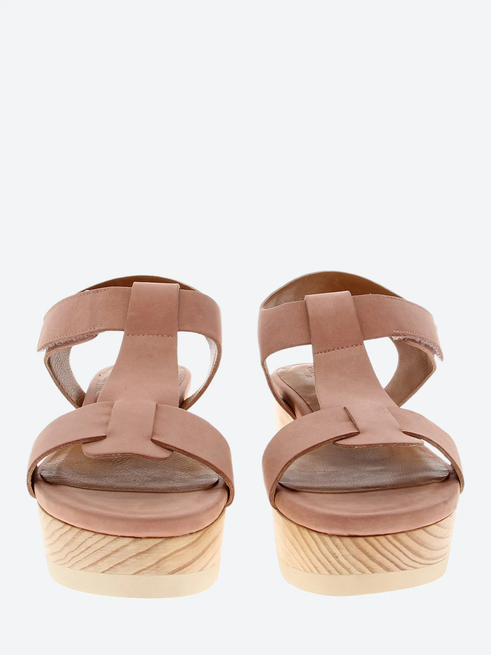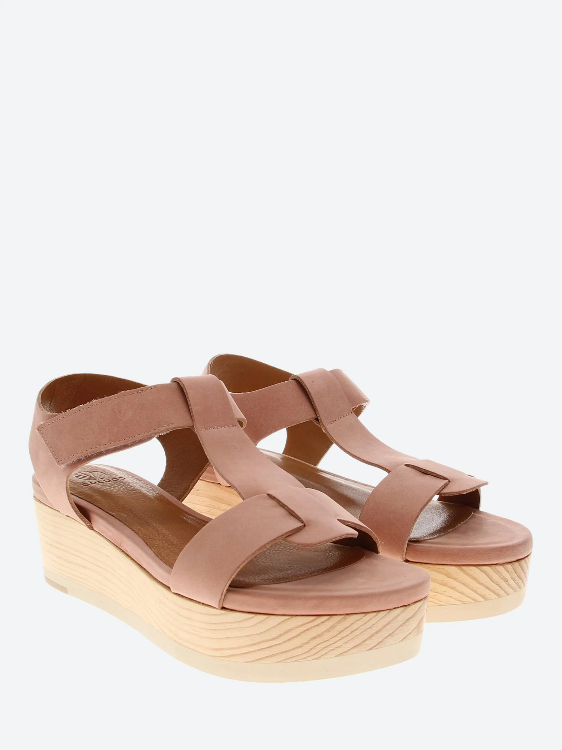 The Ally clog is a raw edge T-strap reminiscent of a summer classic perched on a fresh, contemporary wood platform with a shock-absorbing sole.