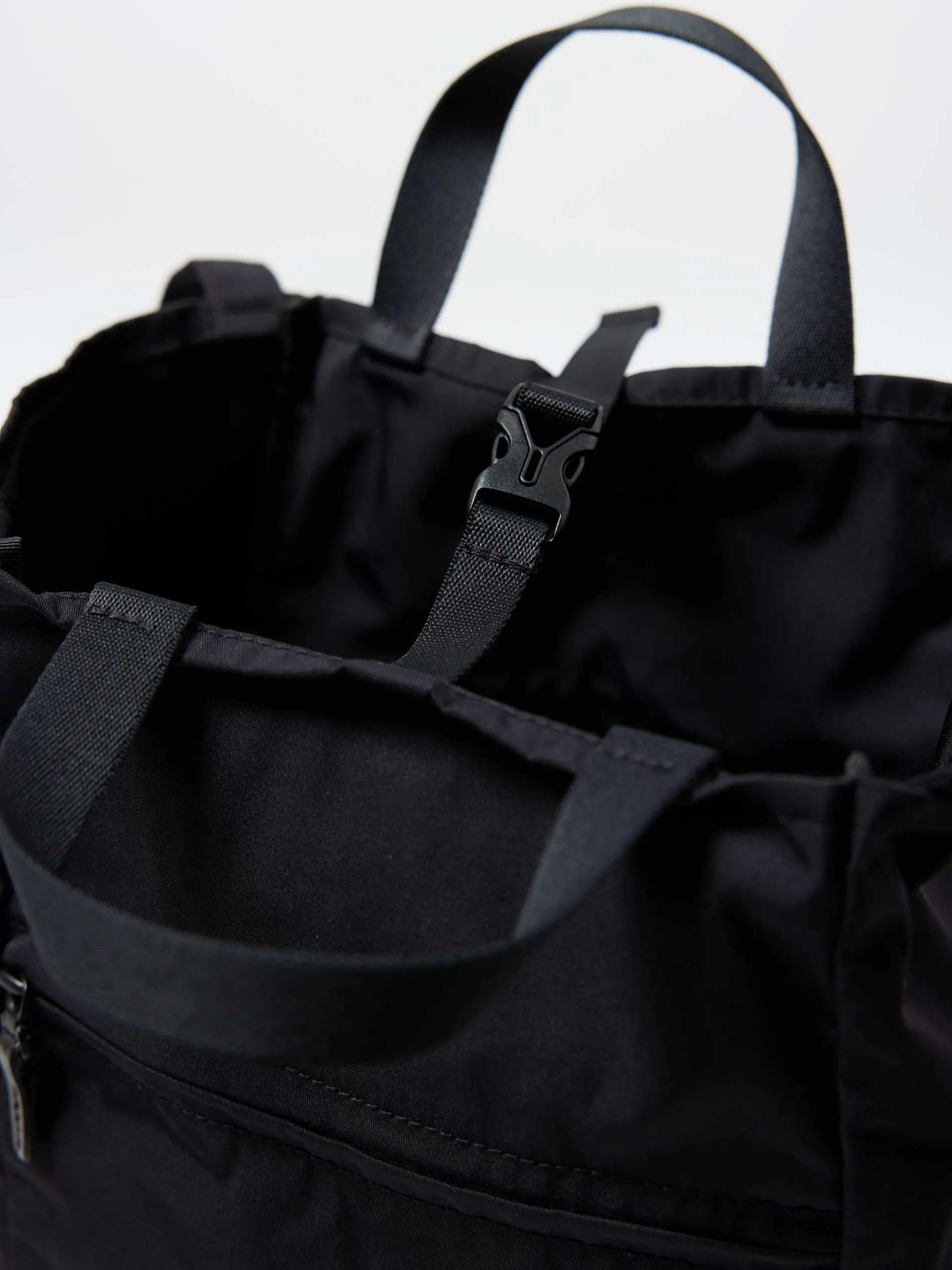 An essential rectangular tote from Amiacalva constructed from scratch-resistant tech-gabardine. Features twin webbing shoulder straps and tote handles for hand-carrying.