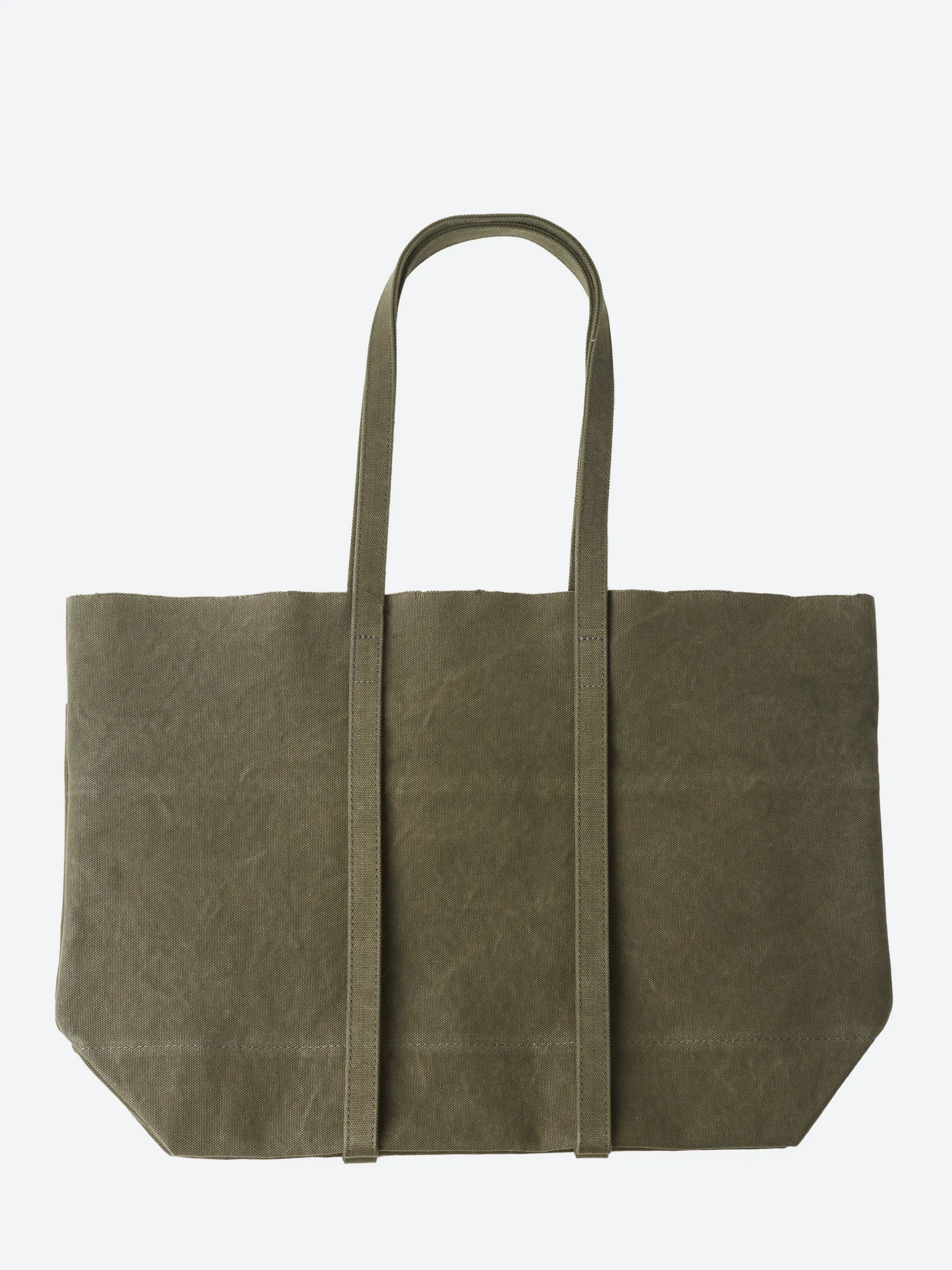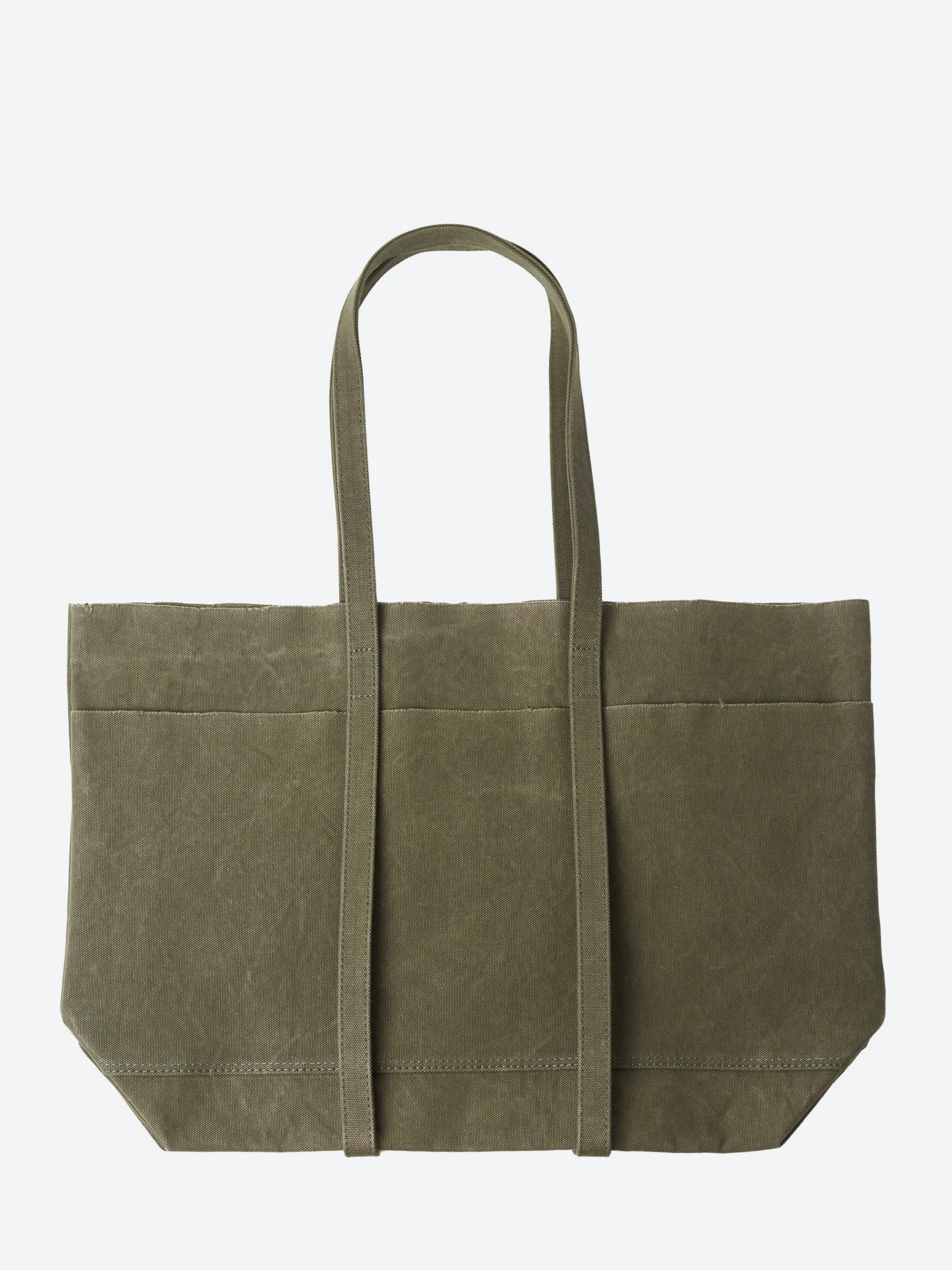 Amiacalva washed canvas tote constructed from pre-washed heavyweight cotton canvas. Features an unlined interior and multiple pocketing for organization.