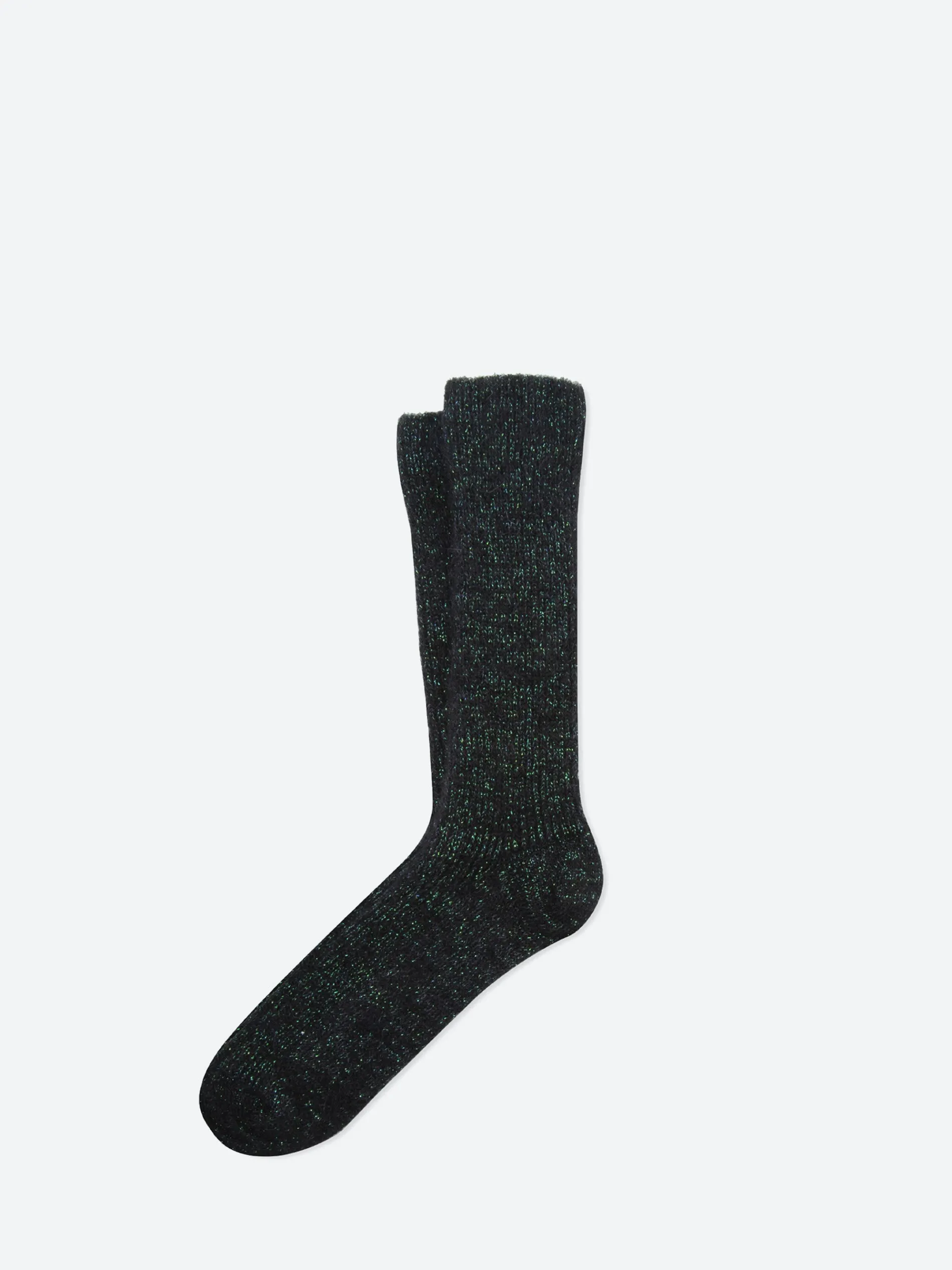 Solid coloured crew socks in ribbed mohair knit with subtle lurex sparkle.