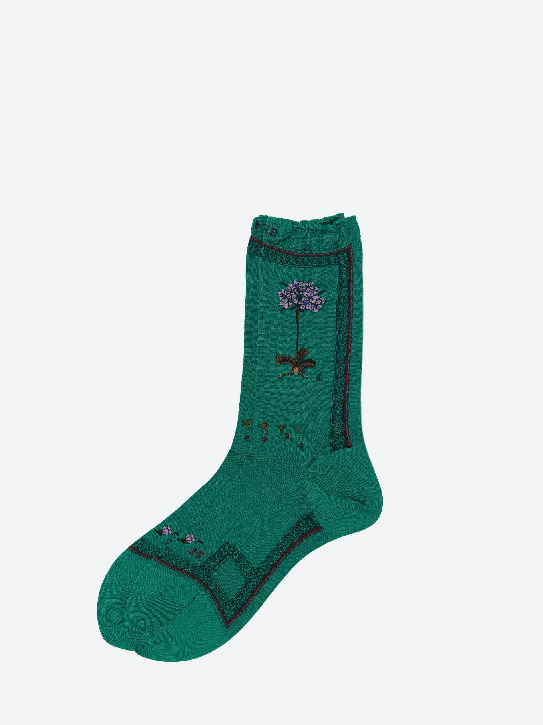 Antipast socks are whimsical and playful, crafted from a fine-gauge cotton and nylon knit blend. They feature a beautiful floral jacquard pattern that adds a touch of charm to any outfit.