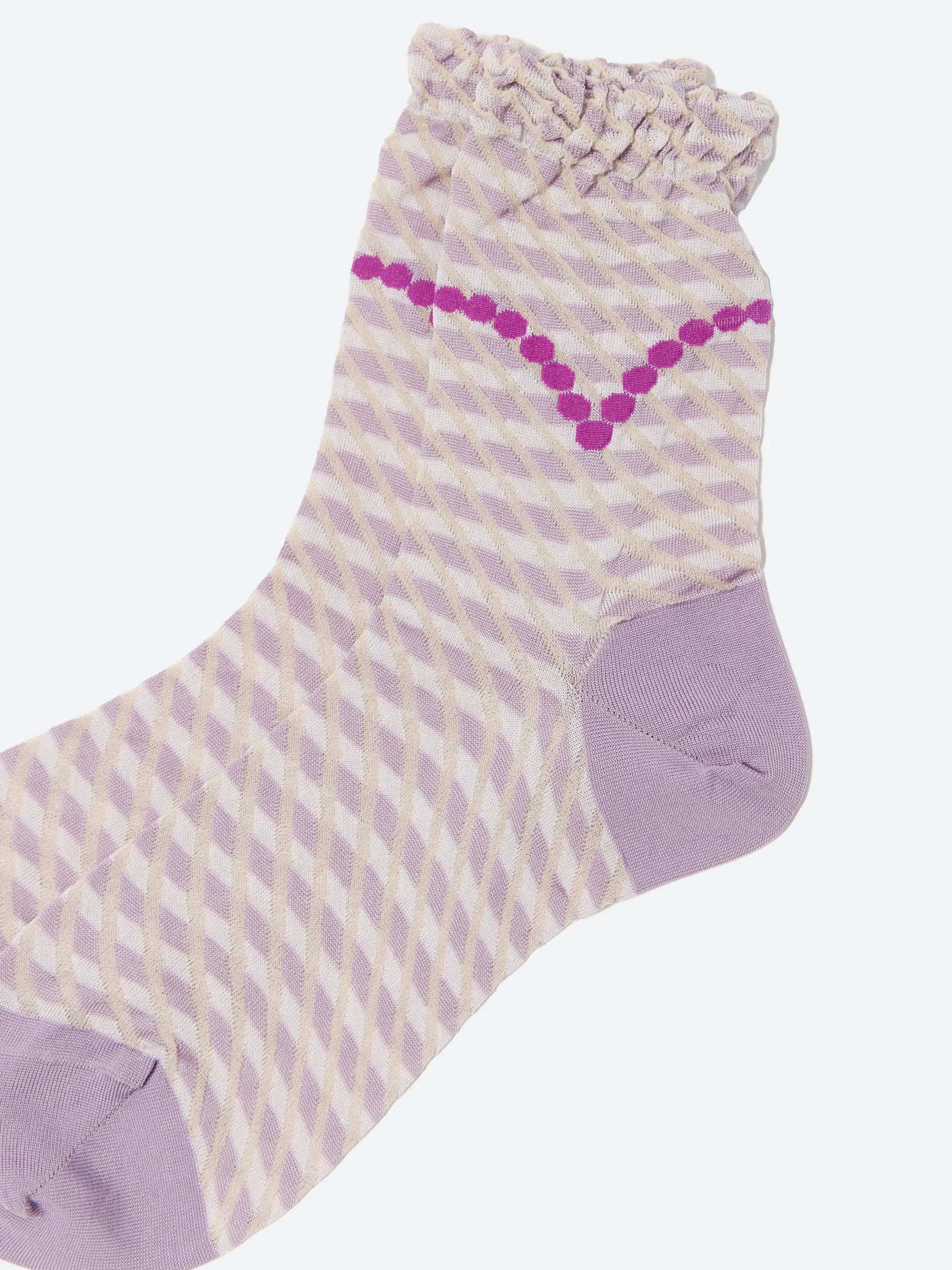 The Candy Check Socks are thin and smooth, offering a comfortable, lightweight feel. Slightly transparent, these socks add a playful touch to your spring and summer outfits, bringing a fun and stylish look to your feet.
