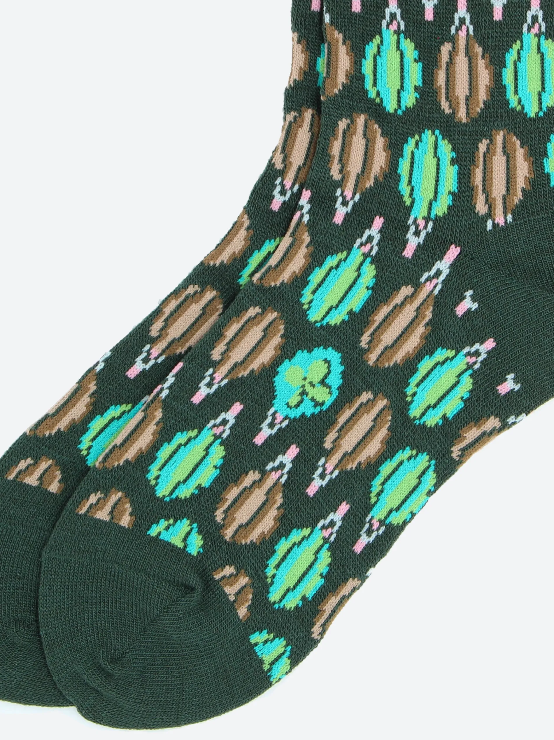 Antipast crew length socks knitted in a fine gauge blend with rows of air balloons.