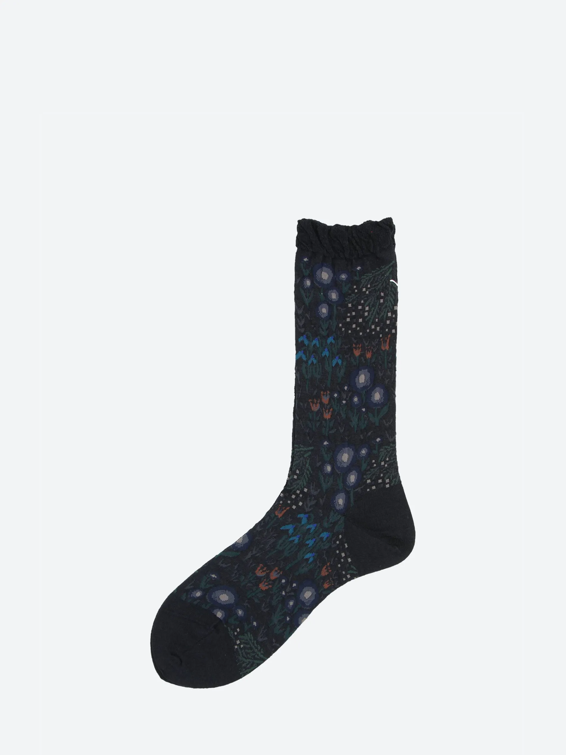 Antipast crew socks knitted in a fine gauge blend with a floral jacquard pattern.