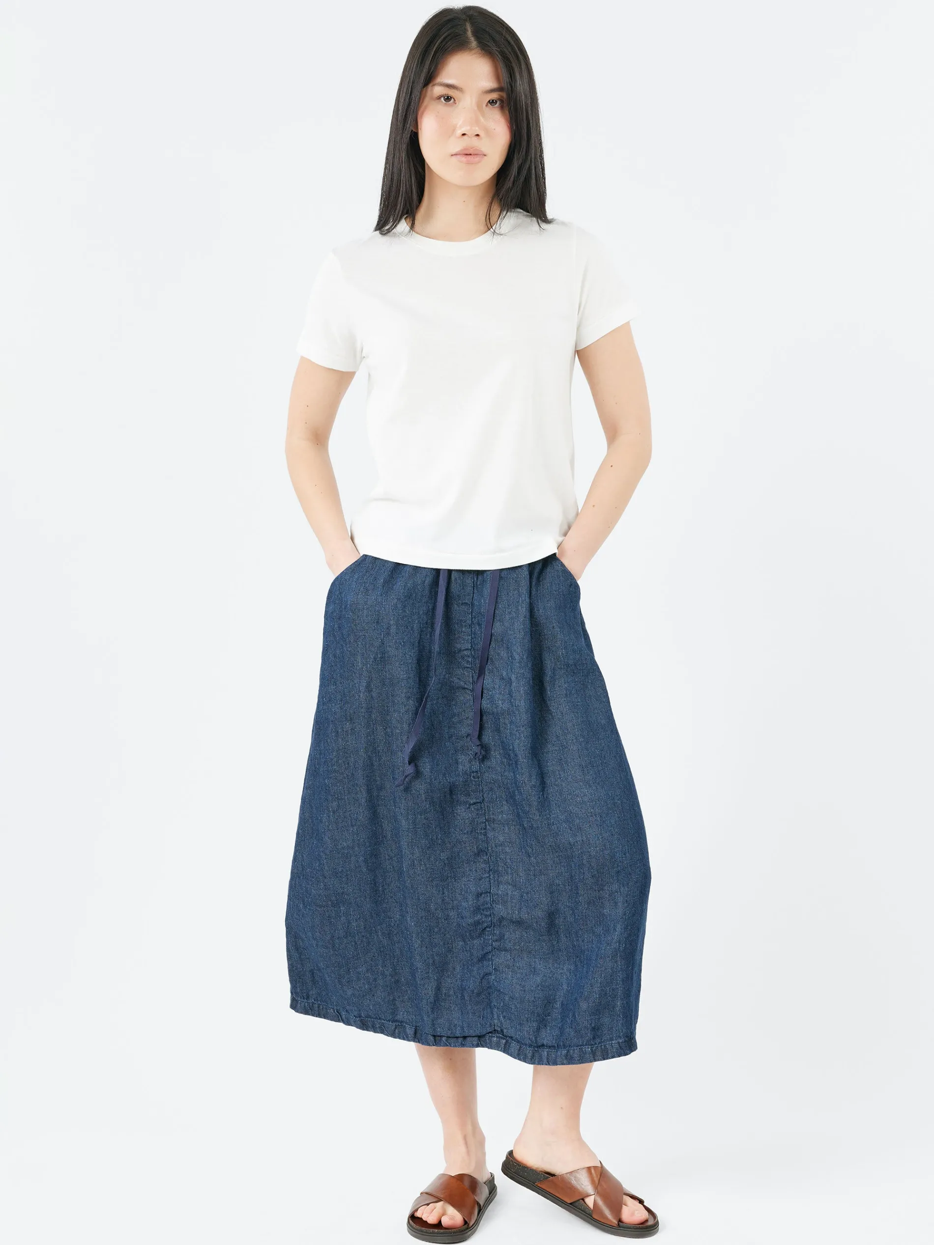 The ApuntoB Skirt blends laid-back elegance with fine Italian craftsmanship. Made from linen, this mid-length skirt is lightweight, breathable, and effortlessly stylish. It features a loose, flowing fit with an elasticated waistband and adjustable drawstring for customizable comfort. Finished with discreet side seam pockets, its clean design and deep indigo tone make it a refined essential for any wardrobe.