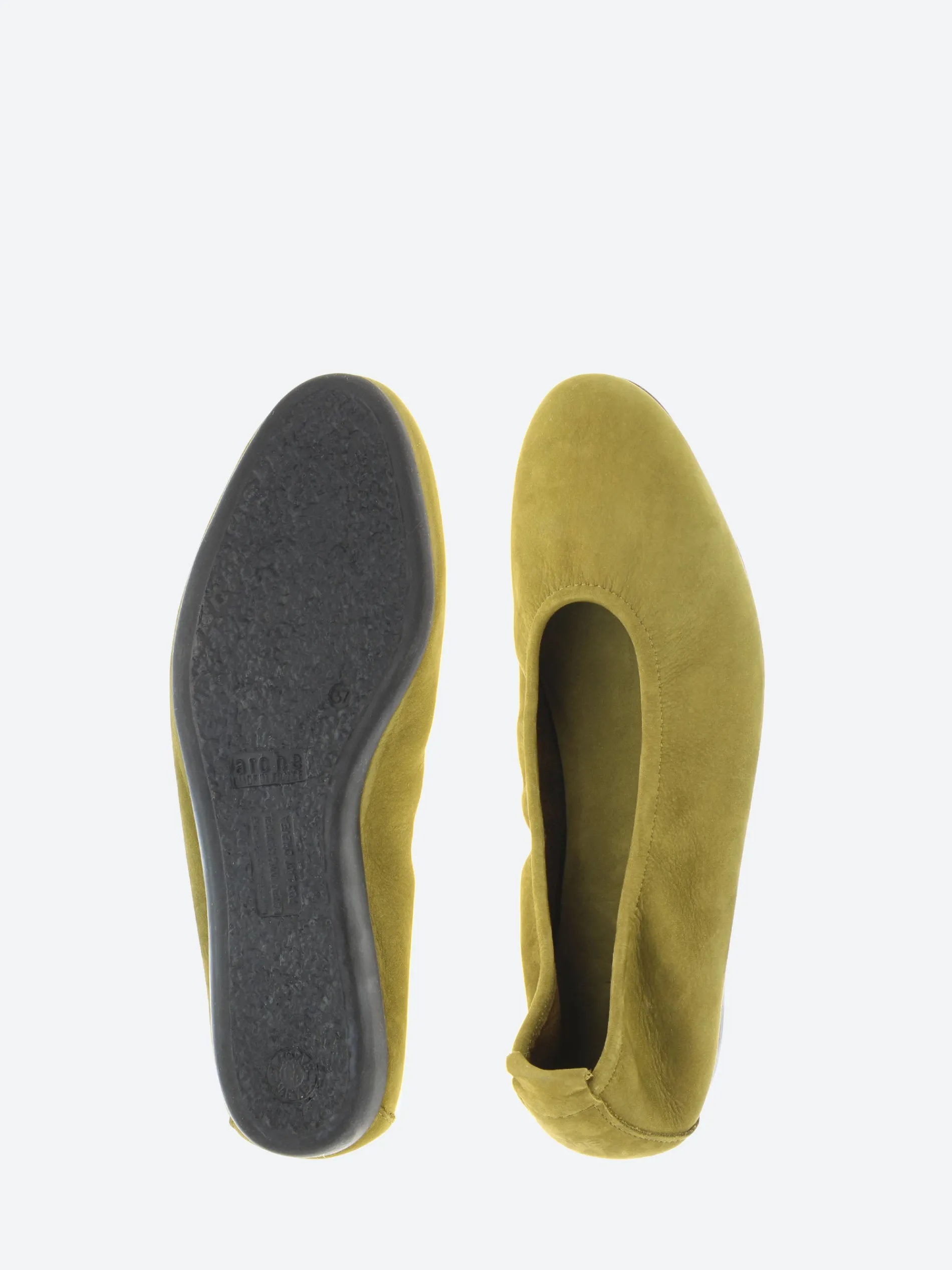 The Laius model by Arche is a classic ballerina design. Crafted from high-quality nubuck, it features a flexible latex sole for comfort and durability. The design is monochrome, with a beautifully rounded toe that adds elegance. The interior is unlined, enhancing the shoe’s flexibility, while the slightly elevated heel section of the sole provides added comfort for all-day wear.