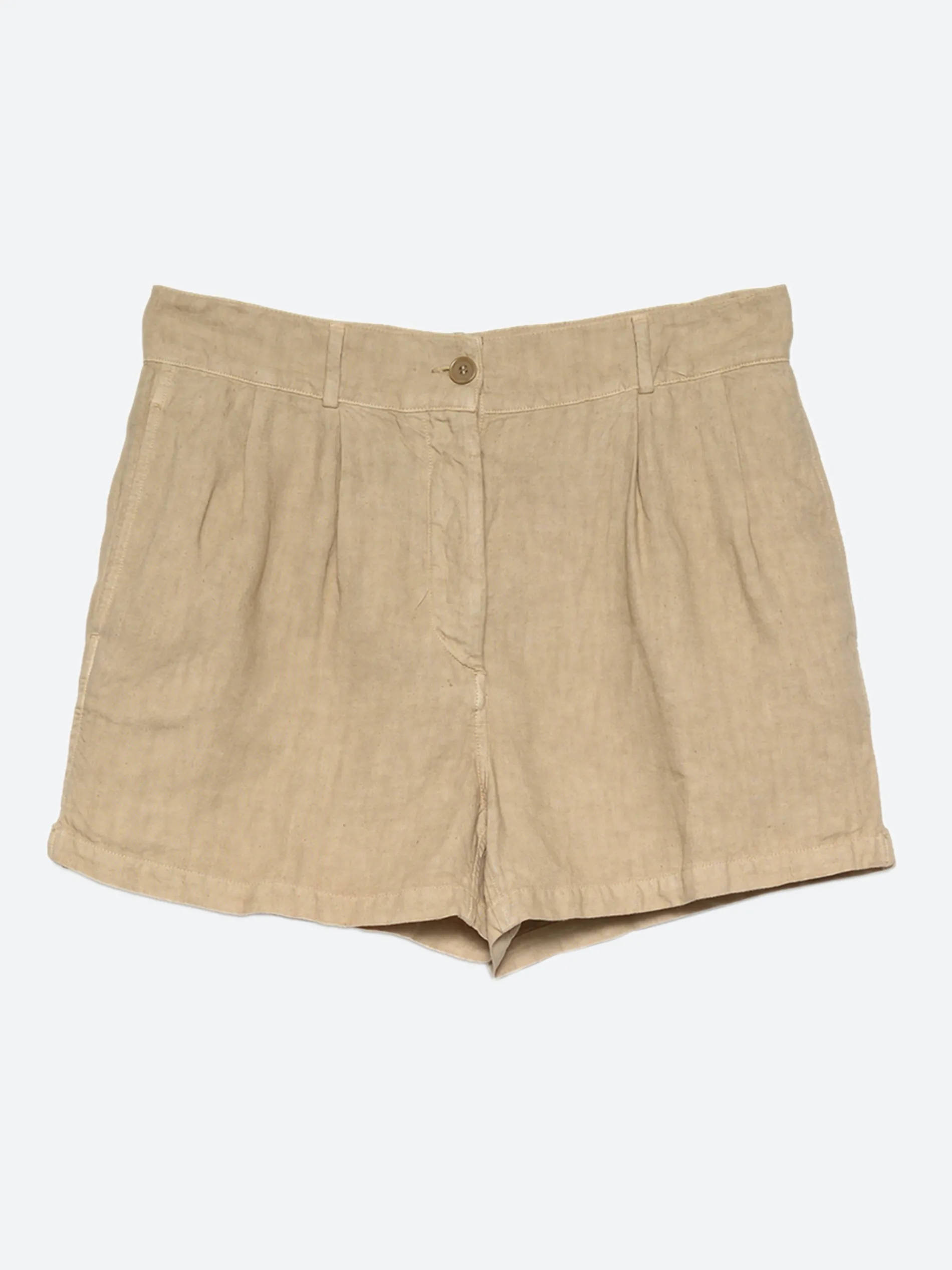Aspesi compact slub linen shorts with a high waist and a classic thigh-length silhouette.