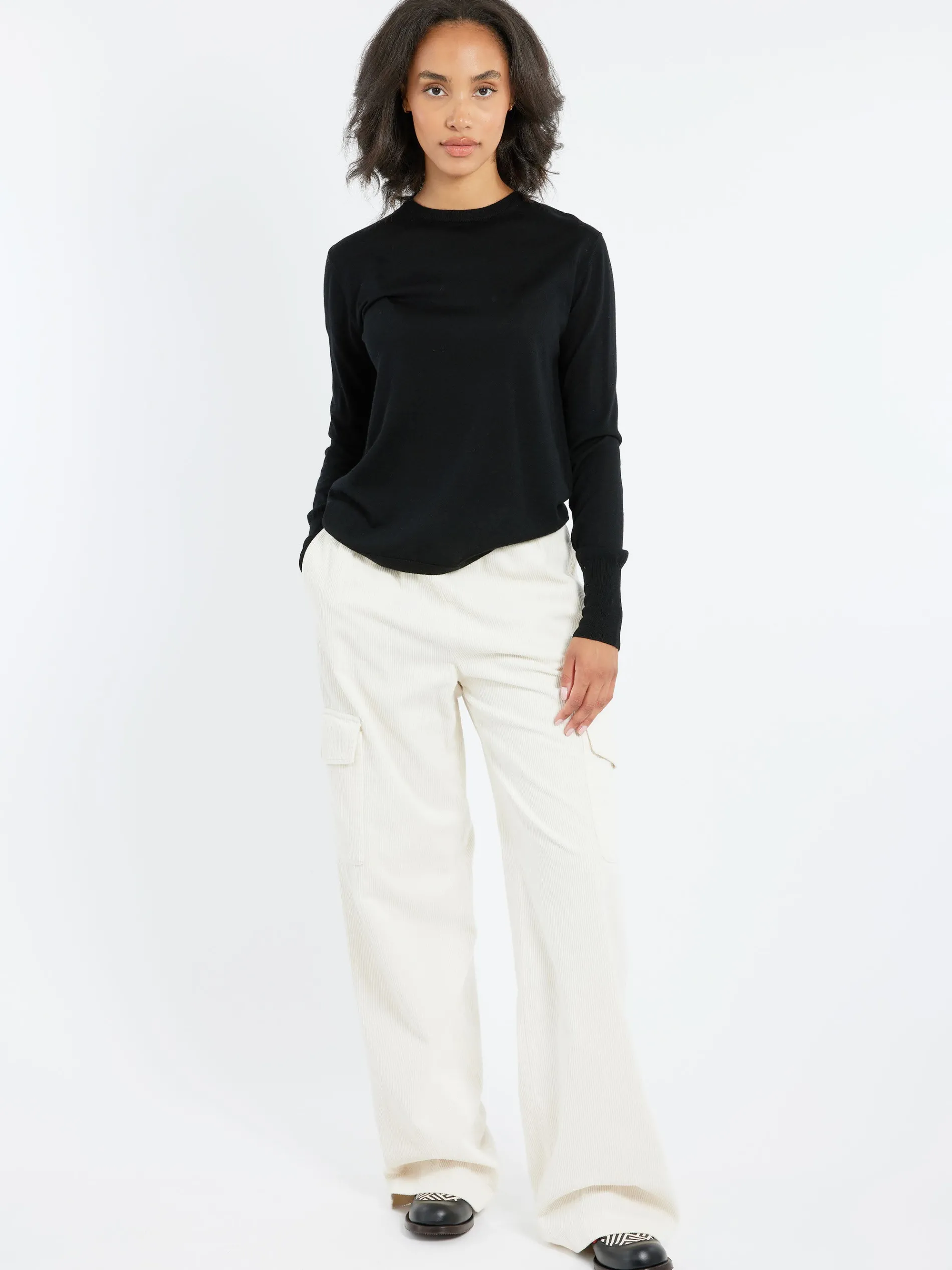 Long-sleeved crew-neck jumper made of pure merino wool.