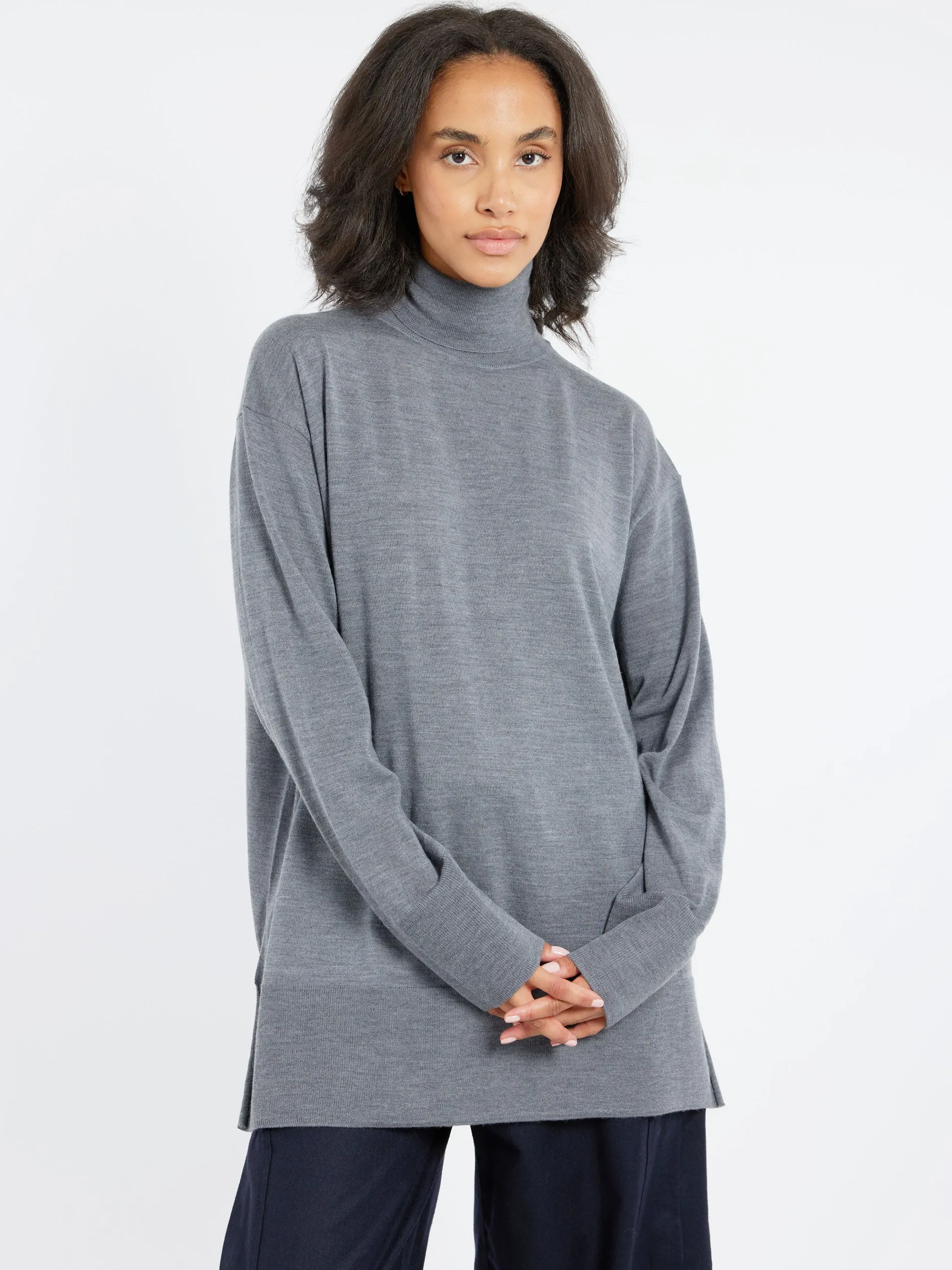 Long-sleeved turtleneck jumper made of pure merino wool.
