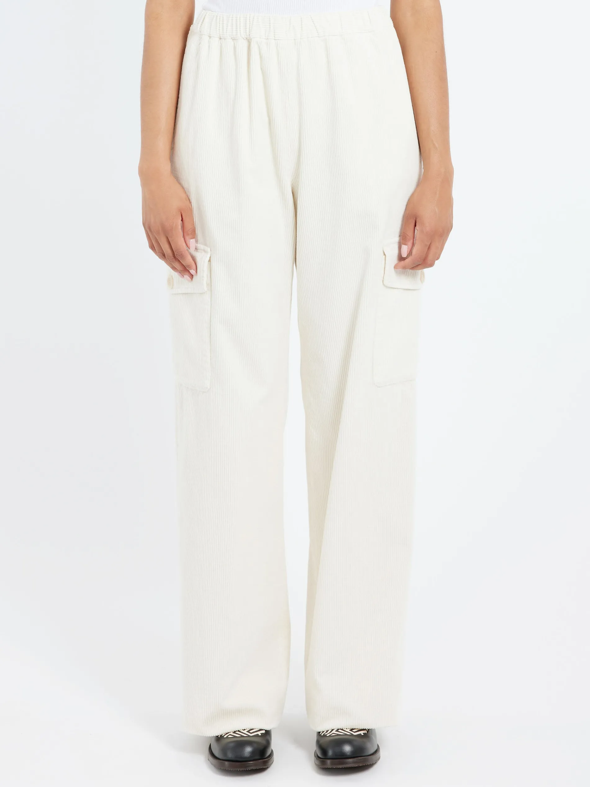 Trousers made of garment-dyed ribbed cotton velvet, a classic and particularly versatile fabric.
