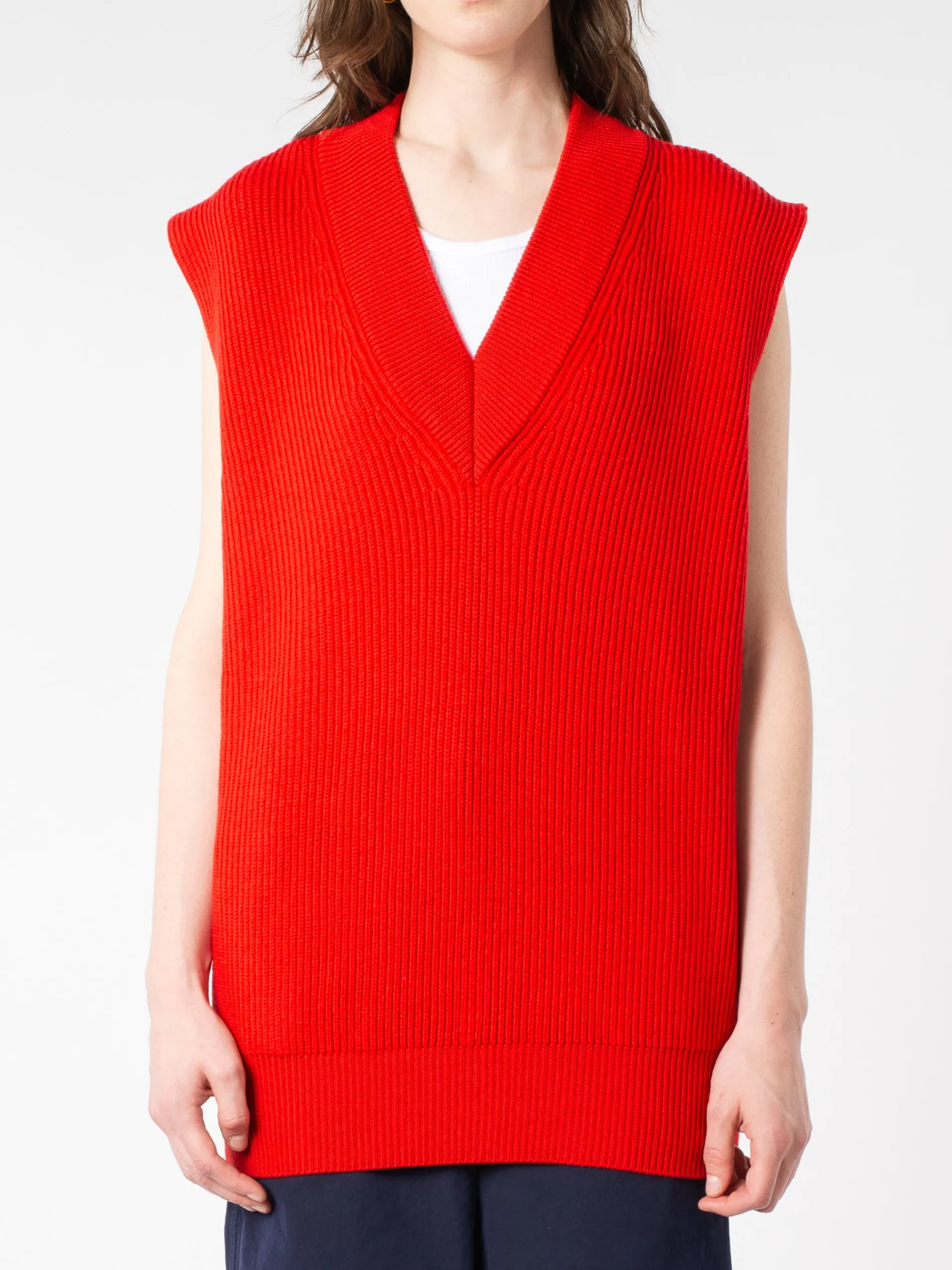 Barena Venezia oversized vest features a flattering v-neck and chunky knit, with an elevated textural look.