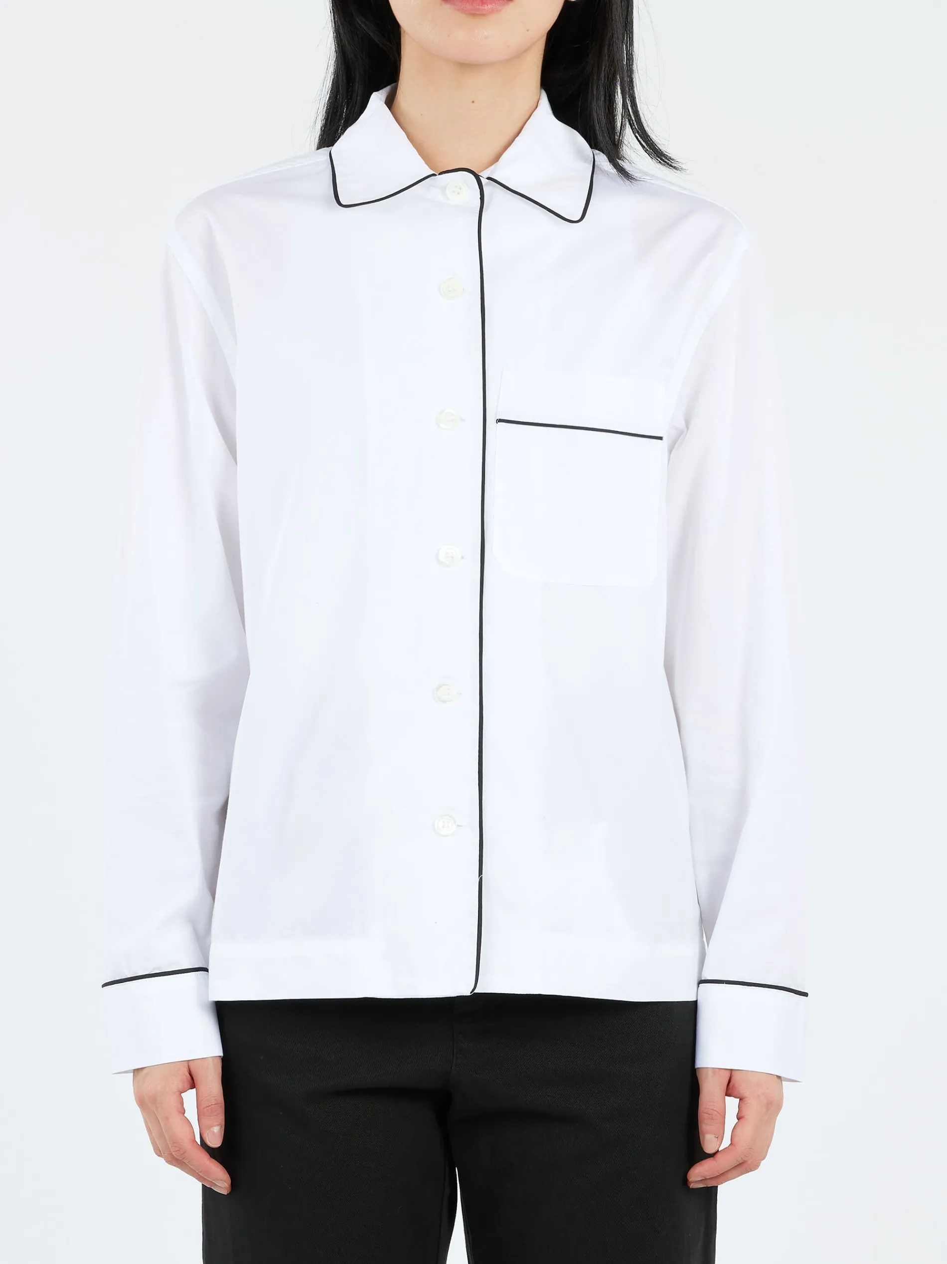 - Long sleeves with buttoned cuffs