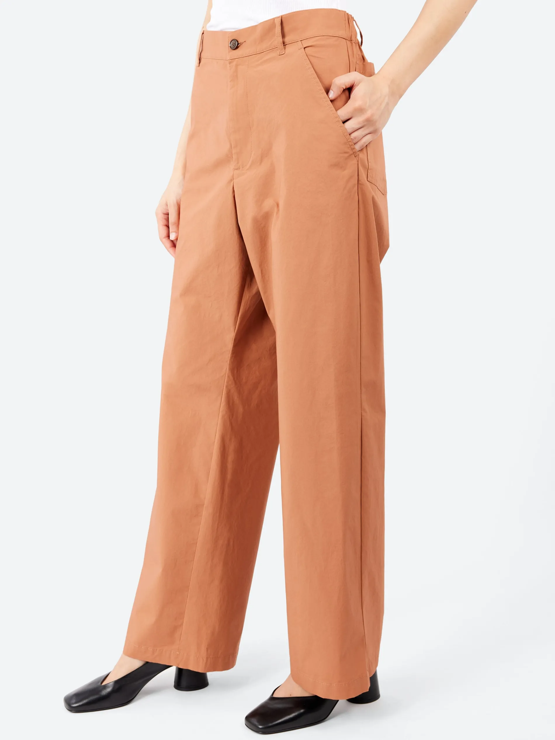 The lightweight parachute stretch poplin, adds a bold and contemporary edge to these trousers, which have become a timeless piece for Barena womenswear season after season. Strict lines and a minimalist design are paired with a relaxed-fit silhouette and an elastic waistband at the back, ensuring both comfort and functionality.