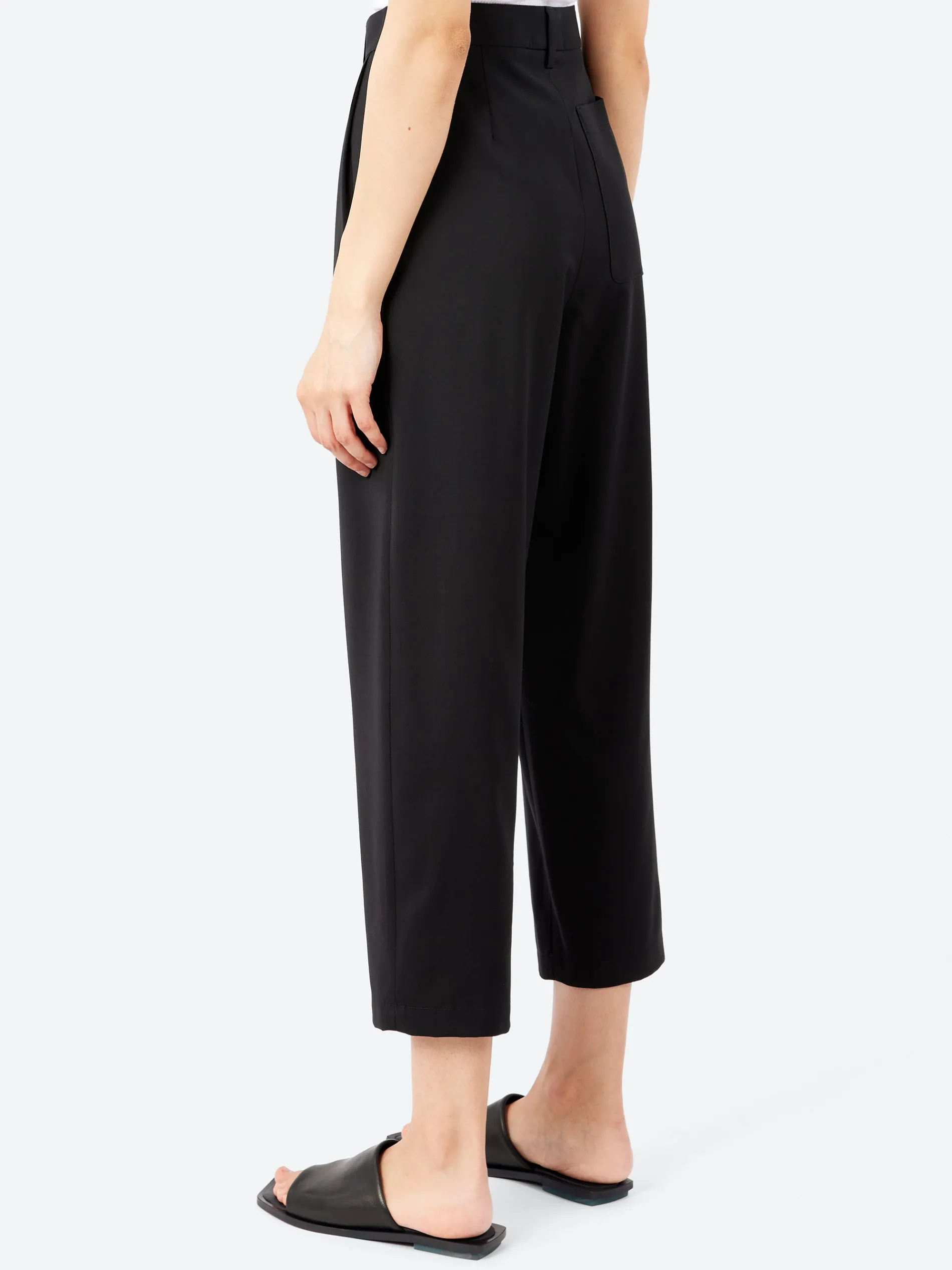 The Roxanne trousers are made from lightweight tropical wool, enhancing its timeless elegance while maintaining a casual silhouette. The style includes double pleats on front, for a refined appearance.