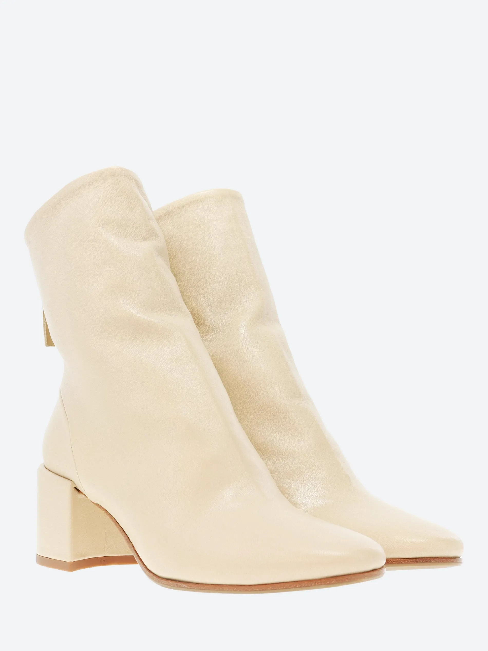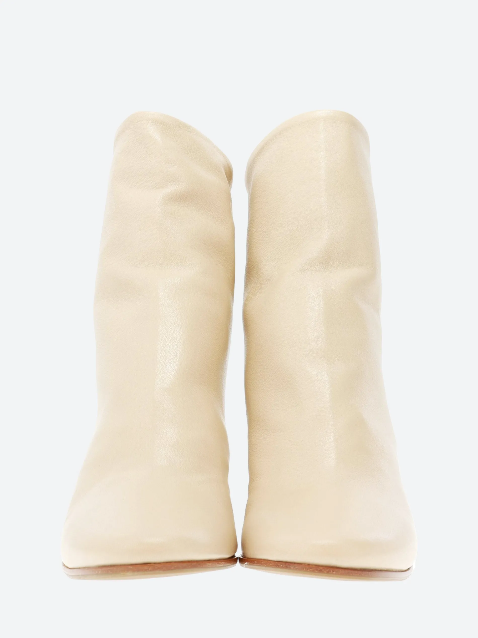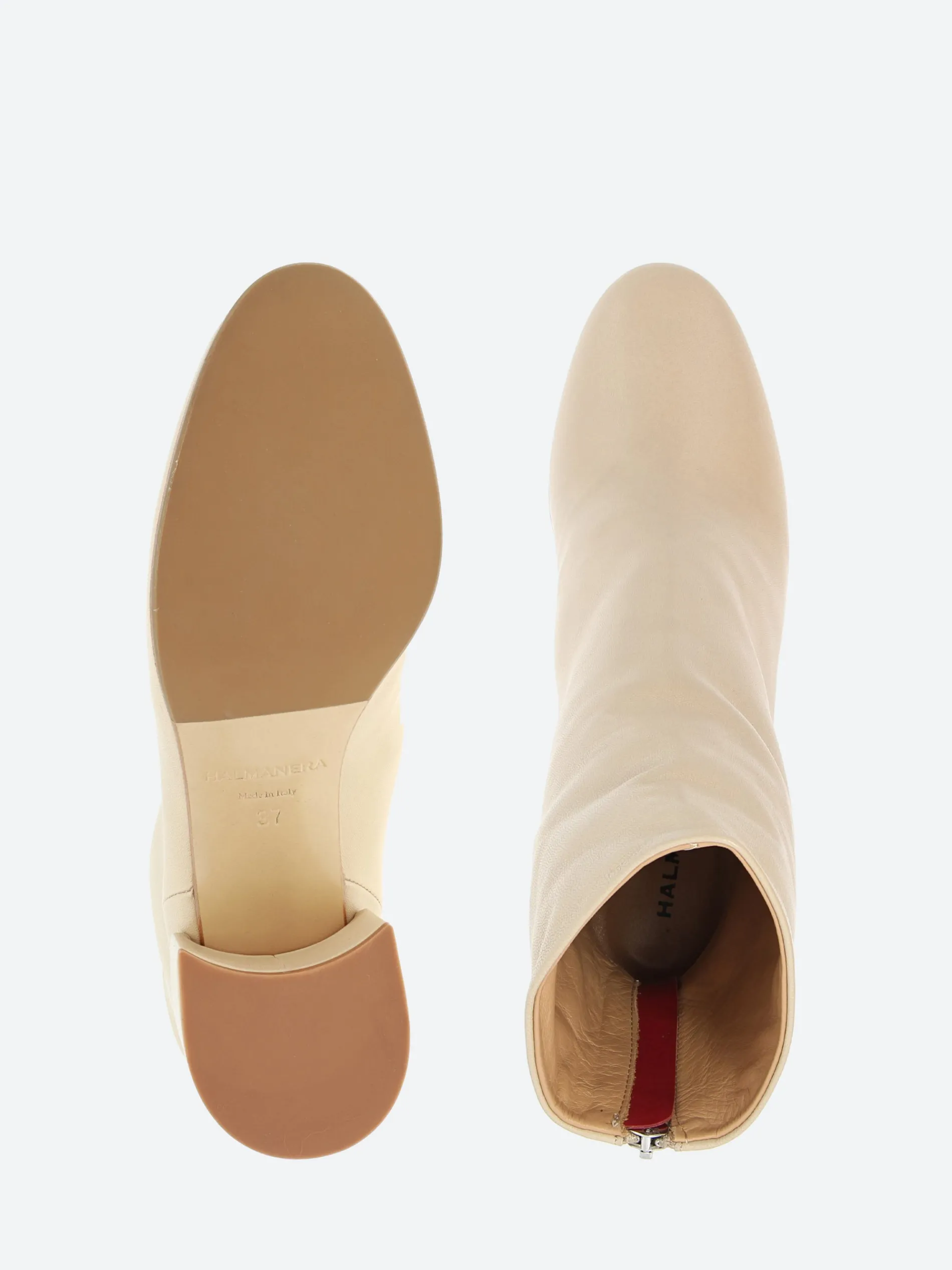 Halmanera heeled boot in leather. A slip-on style for easy on and off. Finished with a high heel.