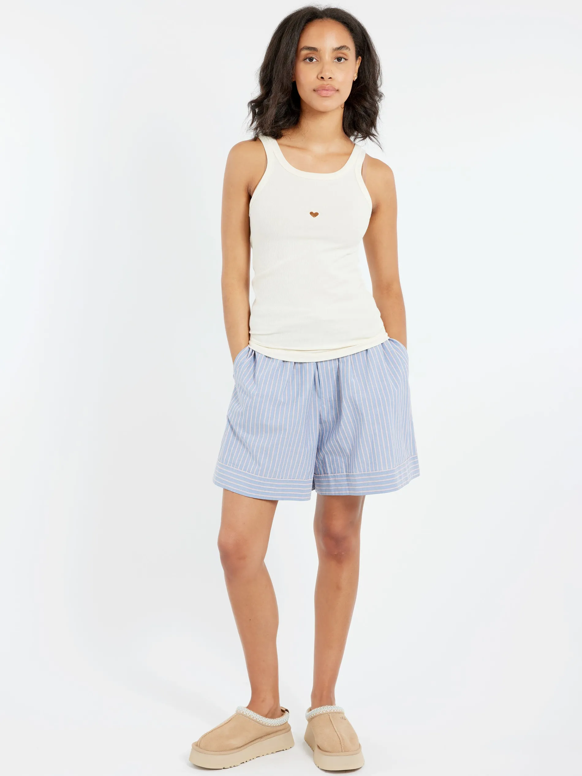 Cotton shorts with side pockets, in a red and blue stripe.