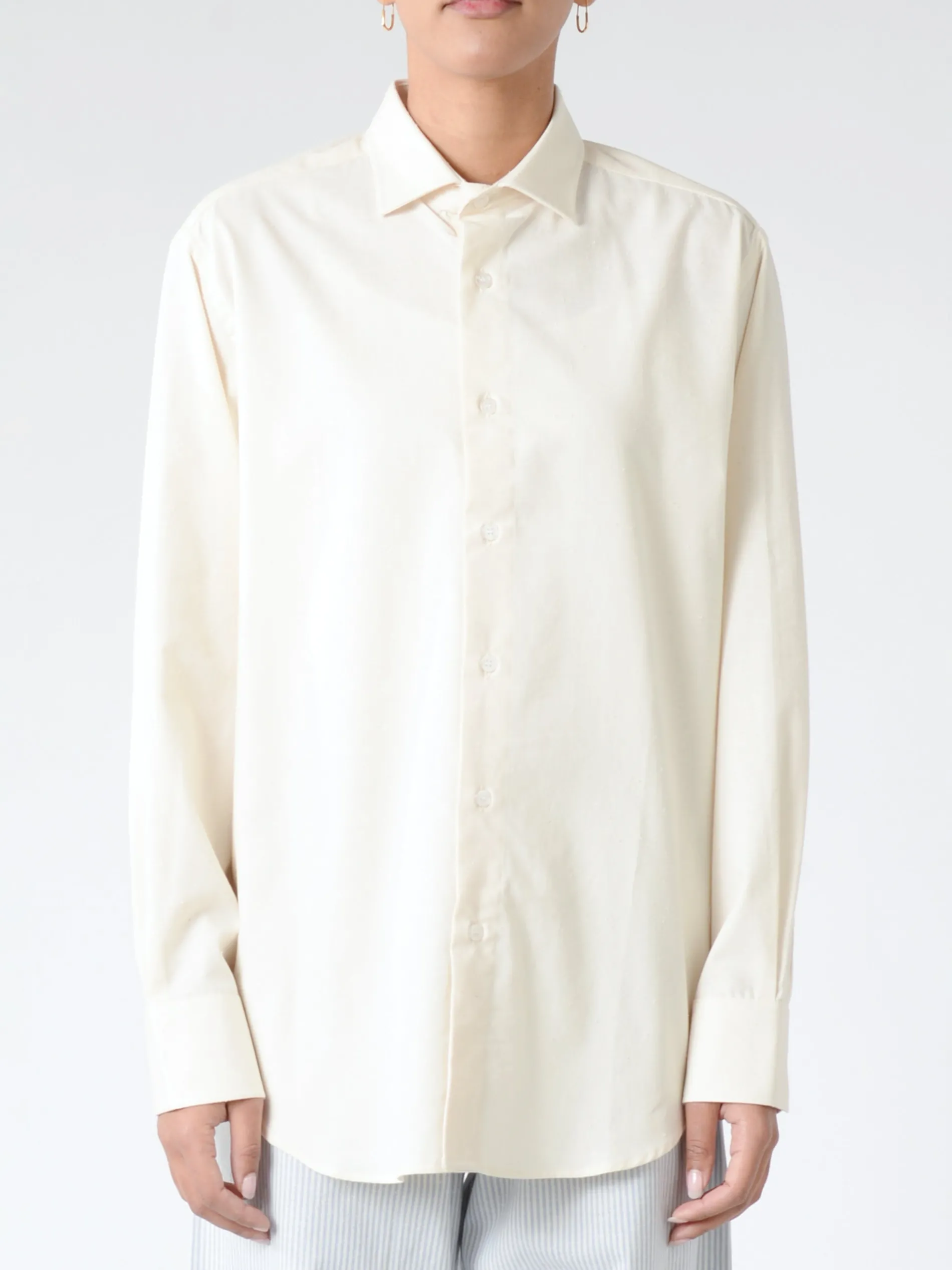 Baserange Ole Shirt is a versatile boxy button-up shirt with a medium collar in organic cotton.