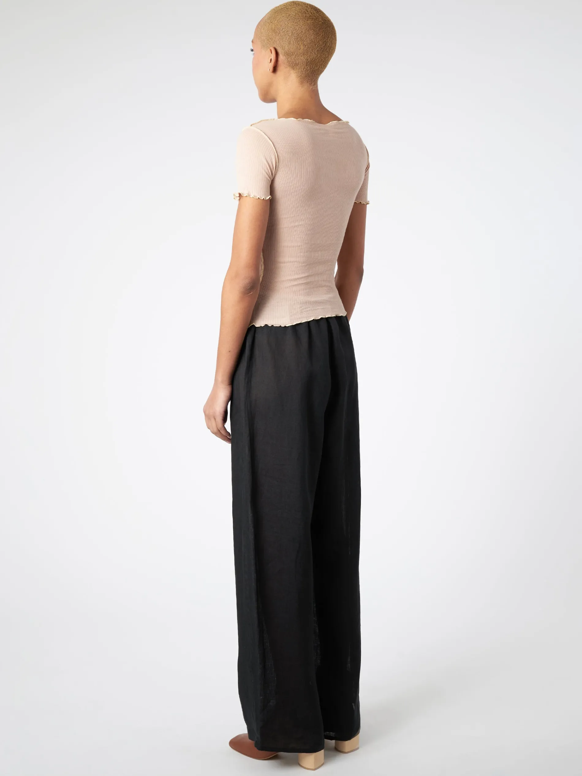 This tee features a formfitting design with a wide neckline, as well as a thin and soft fabric. All seams and edges are finished with a babylock technique for added durability and quality.